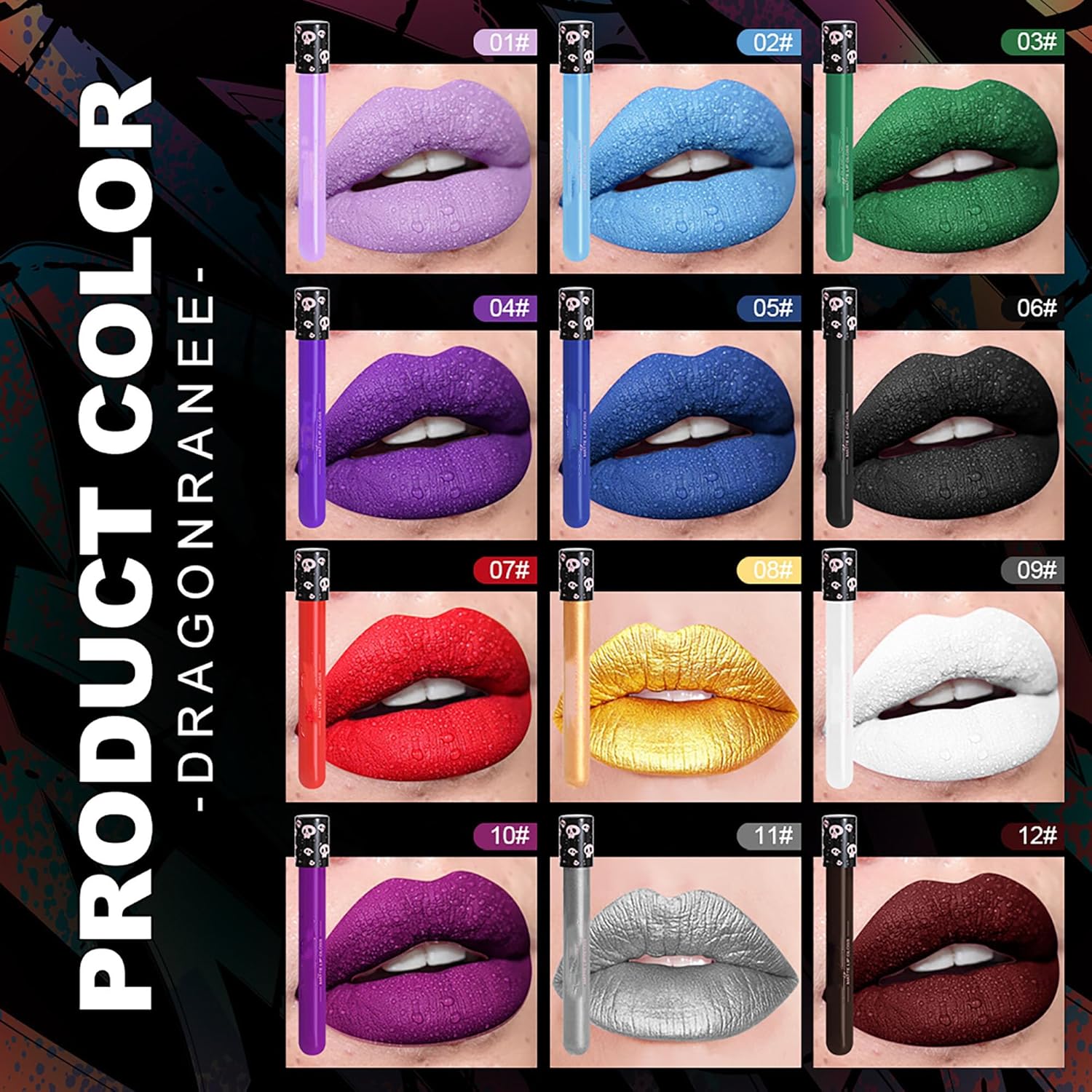 💀【Waterproof & Long-lasting Liquid Lipstick】 Charming matte, long-lasting and waterproof, Not stick cup, do not fade. Brings a fog surface velvet effect. Waterproof, anti-kissing, non-sticky, not easy to fade. Charming matte, long-lasting waterproof function, easy to use lip cleansing oil to remove, bring you a sexy experience.