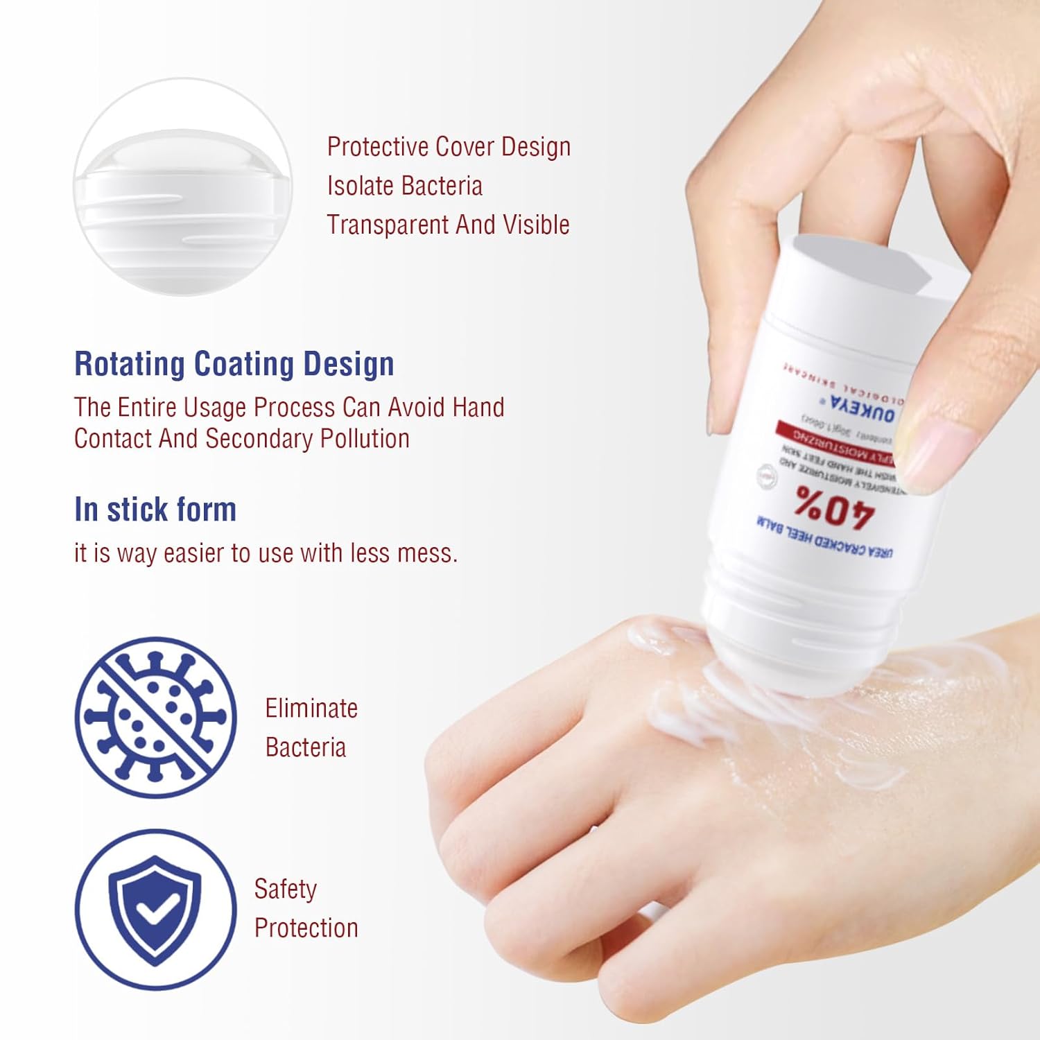 【OUKEYA Urea Cream 40% Formula】This urea cream stick is powered by 40% Urea. It helps effectively soften hardened skin, provide deep moisture, nourish the skin’s barrier, and improve skin texture on tough areas.