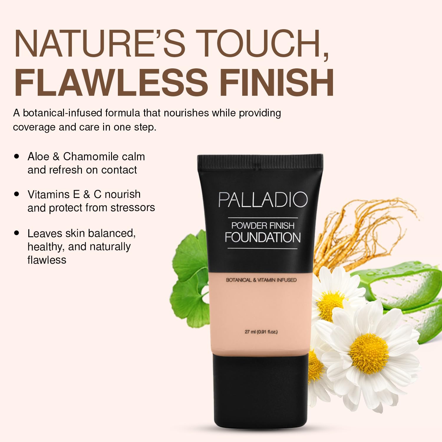 BOTANICAL AND VITAMIN INFUSED COSMETICS: Infused with nourishing skincare ingredients like Vitamin A & E, ginseng, chamomile, gingko biloba, cucumber, and aloe that helps to moisturize skin, Vitamins A and E, as well as Ginseng and Gingko extracts, aid in reducing the look of fine lines, large pores and other imperfections. Cucumber, Aloe Vera and Chamomile extracts soothe and moisturize the skin while evening its complexion