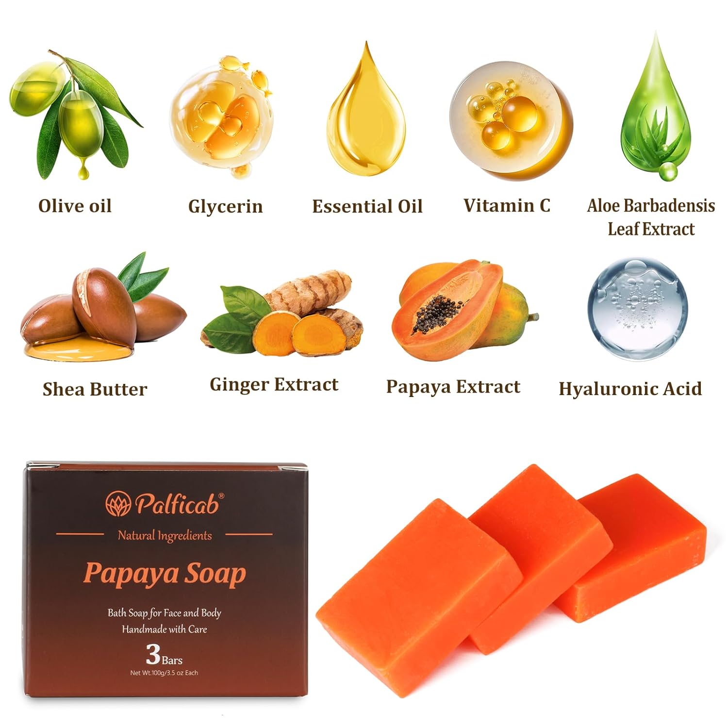 PAPAYA EXFOLIATING SOAP: PALFICAB Exfoliating Face Wash Soap features nature’s Aloe Vera and Papaya extracts to gently unclog pores, exfoliate, and improve skin texture. Experience a smooth, refreshed feel as it promotes healthy skin cell turnover. Perfect papaya bar soap for men and bar soap for women