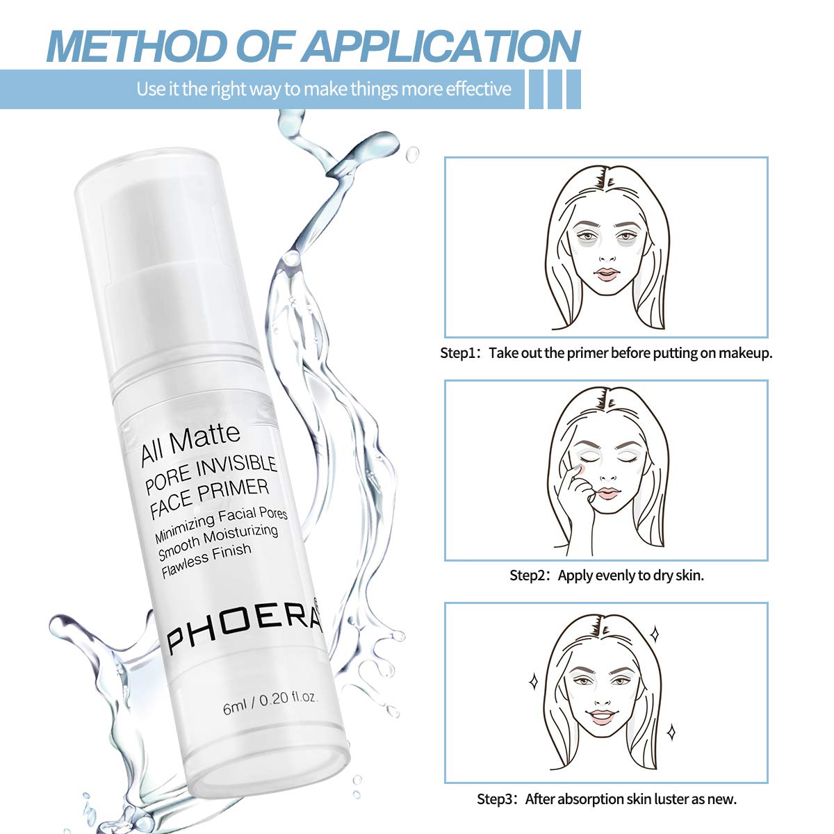 Protect Skin: This Phoera face primer for makeup form a protective film on the skin surface,isolate cosmetics,Effectively protects skin and reduces UV damage and prevent makeup damage,Safe ingredients, colorless and tasteless.