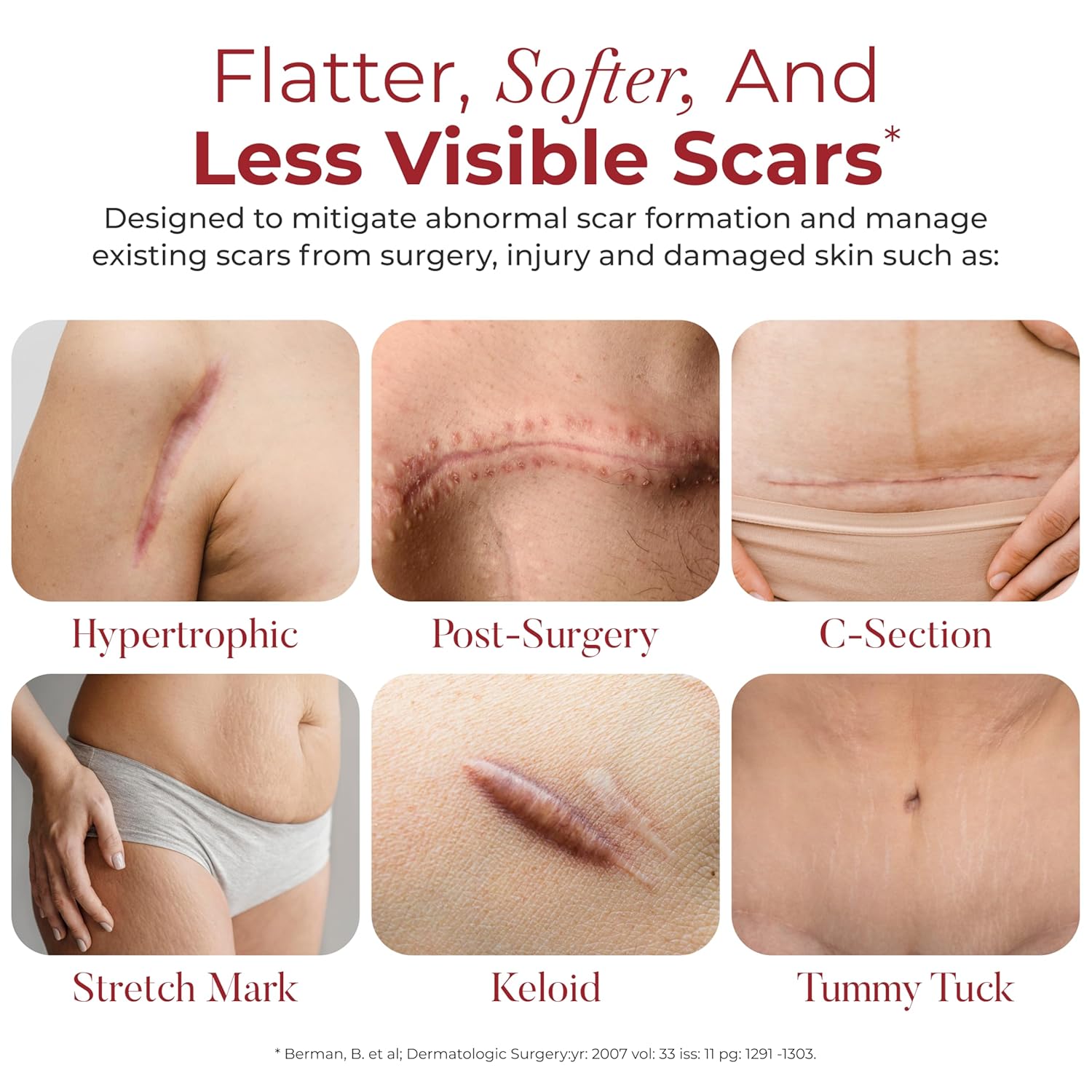 ADVANCED CROSSPOLYMER SILICONE SCAR TAPE: #1 RECOMMENDED INGREDIENT by US Physicians surveyed* for scar reduction from surgery, injury, acne, C-Section, pregnancy, and more. A top silicone scar tape for surgical scars across a wide variety of procedures, including c-section and tummy tuck.