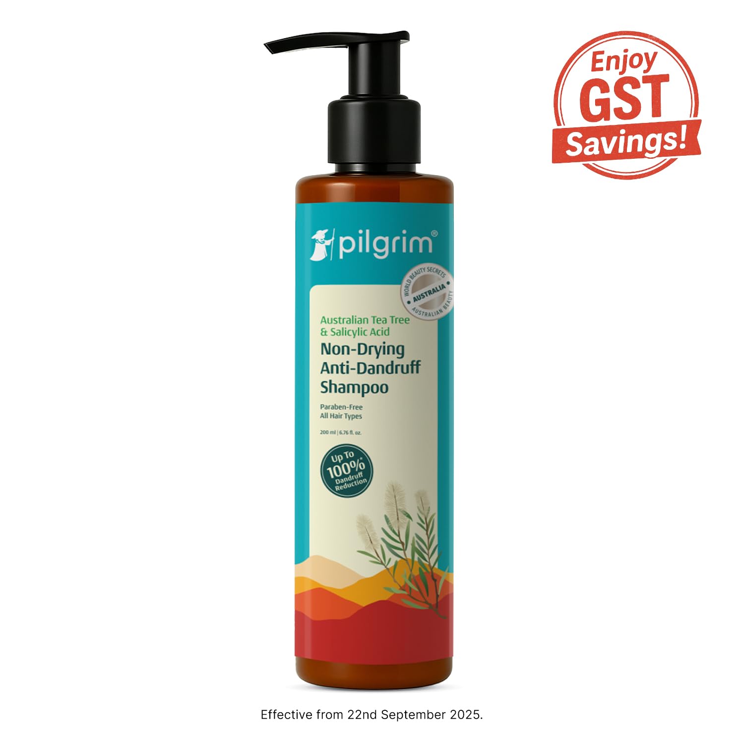 Pilgrim Anti-Dandruff Shampoo with Australian Tea Tree & Salicylic Acid | Non-Drying Itchy Scalp Treatment | Reduces Visible Flakes | Suitable for All Hair Types | 6.76 Fl Oz (200ml)