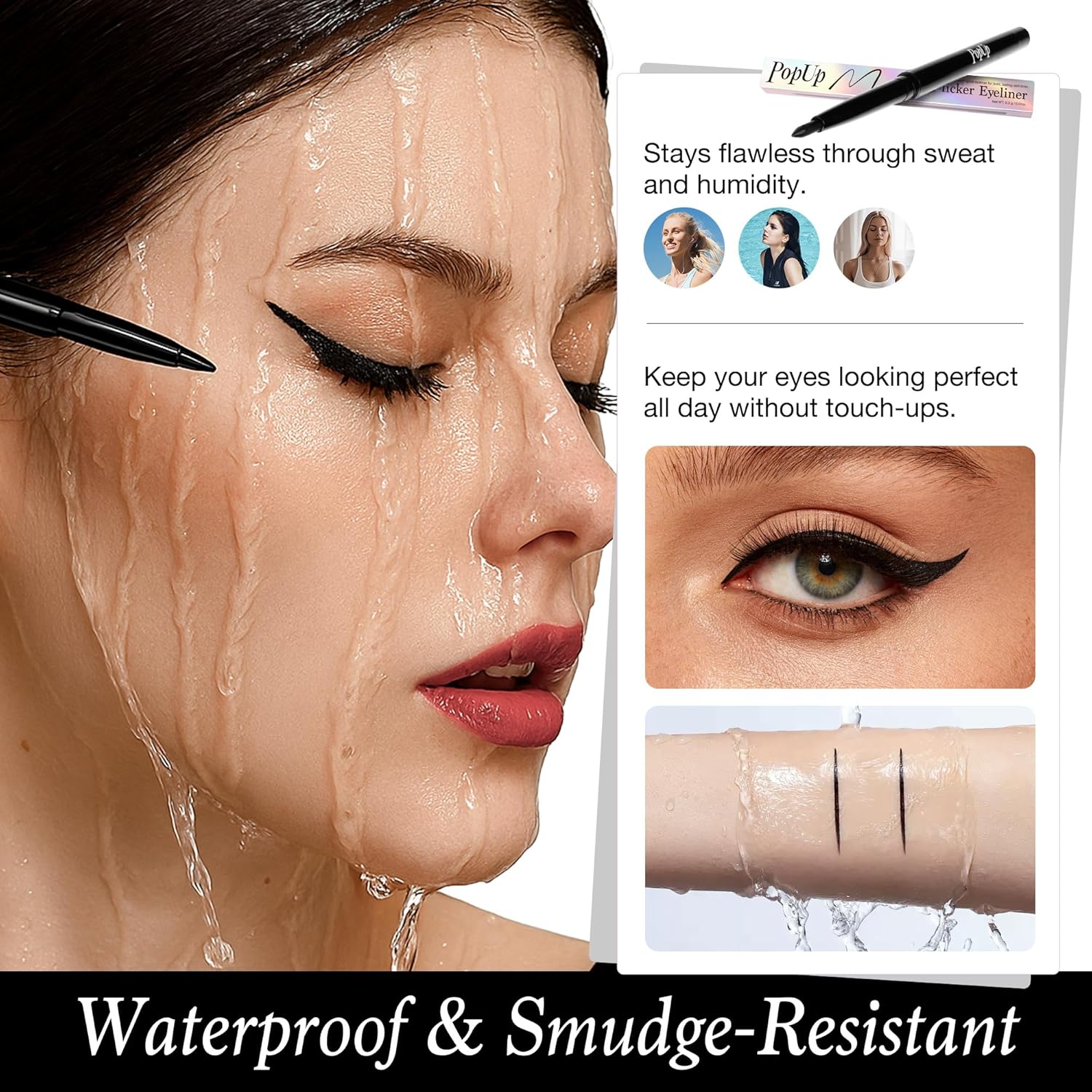 Long-Lasting & Smudge-Resistant: PopUp eyeliner stays put all day, resisting smudges and fading for flawless eye liner from morning to night