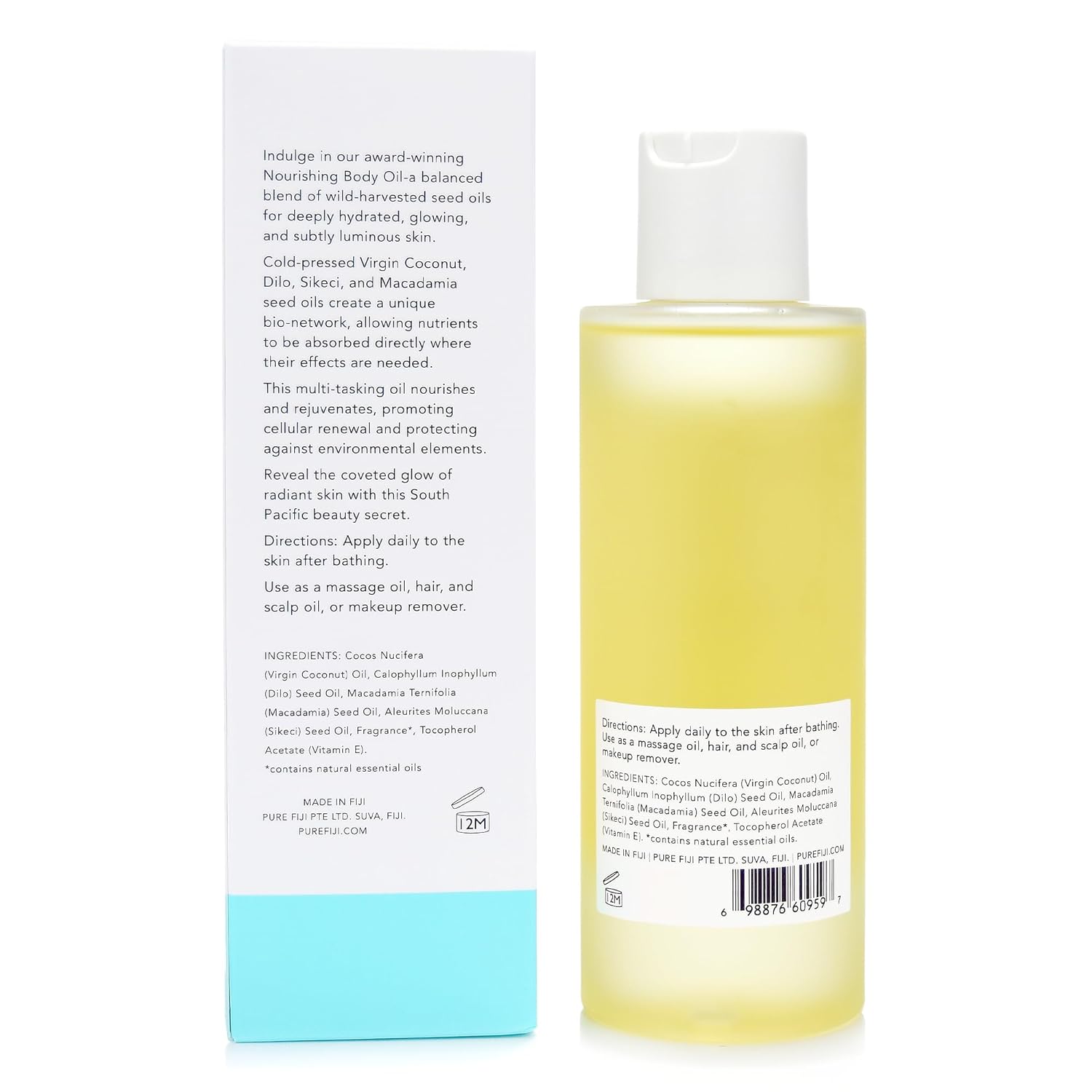 Deep Hydration: Infused with cold-pressed Virgin Coconut, Macadamia, and Dilo oils, this organic body oil penetrates deeply to moisturize and nourish. Ideal after shower as a body oil for women or bath oil for dry skin.