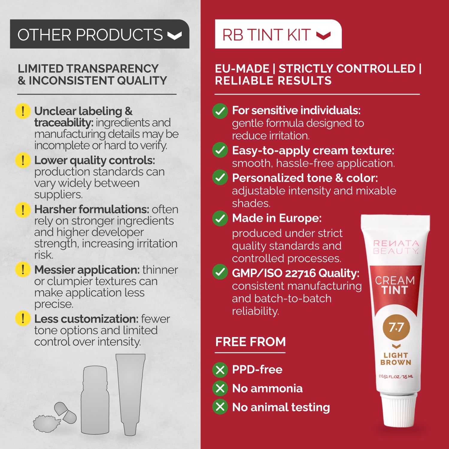 π ENHANCE YOUR LOOK: With the Renata Beauty spot coloring kit, you can effortlessly transform your appearance from the comfort of your home and achieve salon-worthy results. Our complete tint kit is easy to use, effective, and long-lasting.