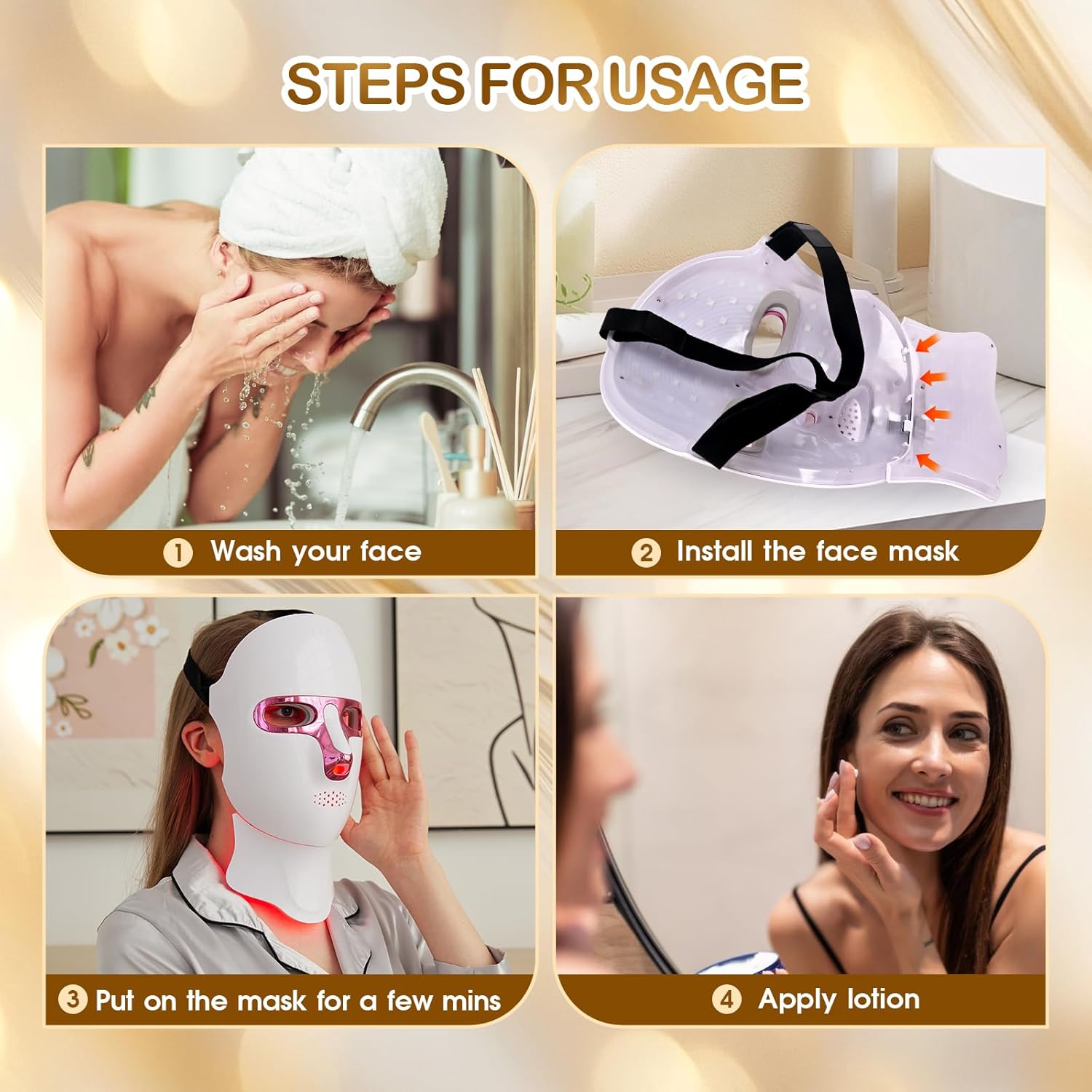 【Ergonomic & Comfortable Design】 Crafted with premium ABS material, this red light mask for face features an ergonomic design and adjustable straps to fit all face shapes. The LED light therapy mask sits gently on the skin, ensuring comfort during every session. Lightweight and durable, it’s ideal for daily red light therapy for face treatments, giving you professional spa-like results from the comfort of home.