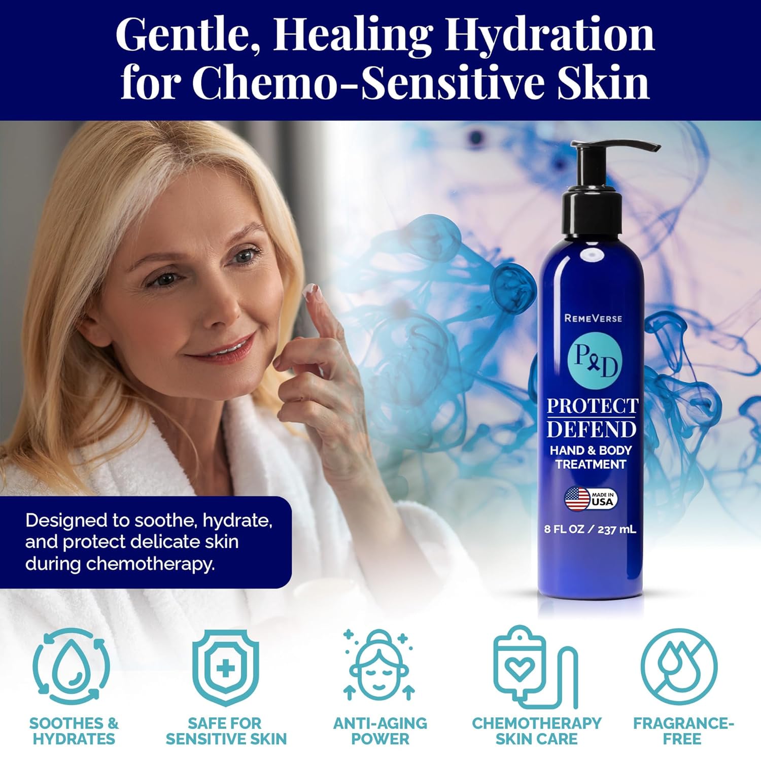 RemeVerse Protect & Defend Hand and Body Treatment Lotion – Moisturizer for Chemotherapy and Sensitive Skin – Hydrating and Nourishing Body Skin Care – Gentle & Fragrance-Free – Made in USA – 8 oz