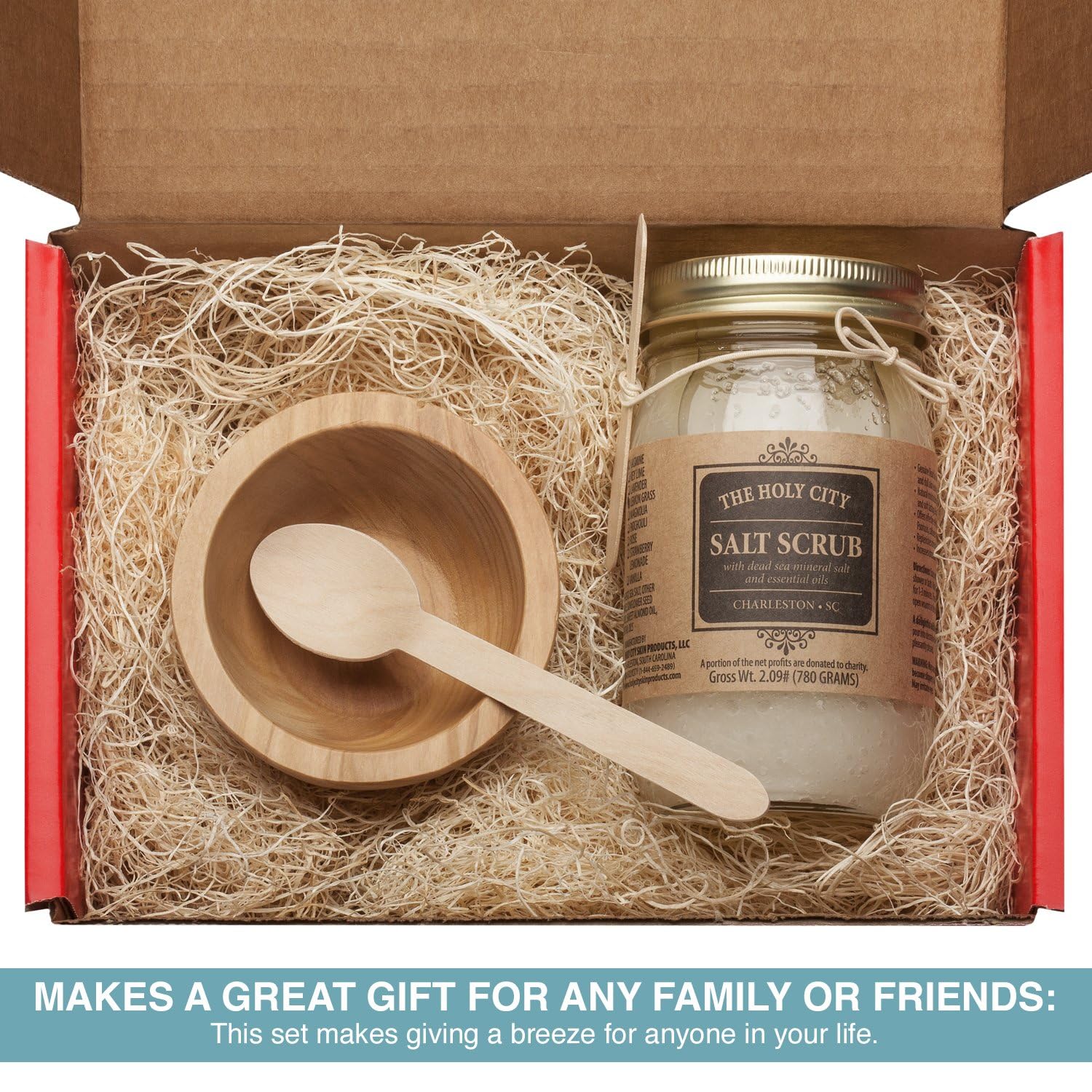 GIVE THE GIFT OF PAMPERING- Perfect gift for Holidays, Birthdays, Anniversary’s, and even Baby Shower’s. Cleanse and beautify your skin with our All Natural Coconut Sea Salt Scrub that comes in a Mason Jar with Bamboo Wooden Bowl & Spoon wrapped in a Beautiful Box. Our scrub will make your skin look as good as it feels by cleansing and enriching your skin to remove dead skin cells and bring on a healthy glow