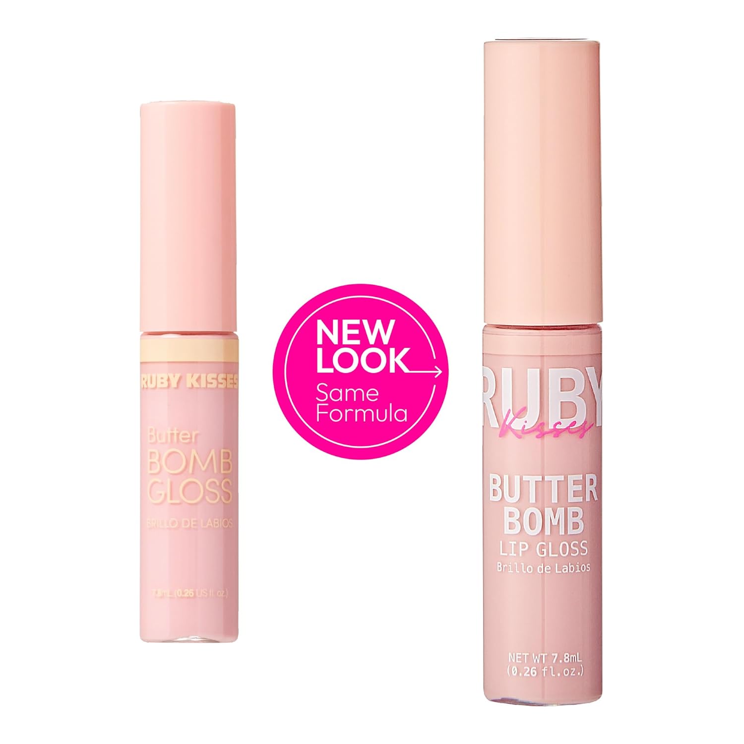 Ruby Kisses Lip Gloss Butter Bomb Gloss Non-Sticky Lip Gloss Vitamin E Natural Nude Lip Makeup – 7.8mL (0.26 US fl.oz) (Like A Virgin)