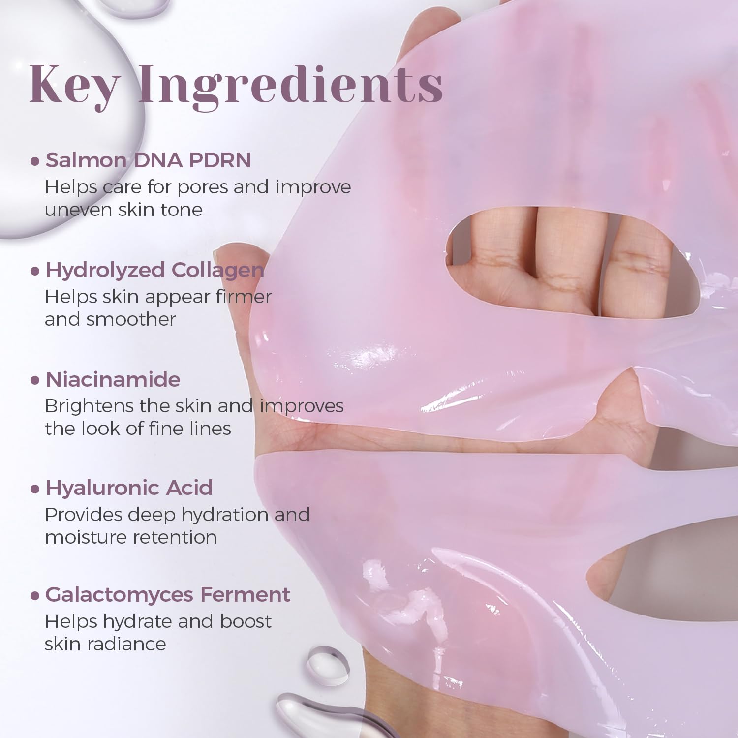 Salmon DNA PDRN Bio Collagen Sheet Mask – Hydrating & Brightening Face Mask with Niacinamide & Hyaluronic Acid for Radiant Glass Skin Glow, 34g Essence, 4 Pack