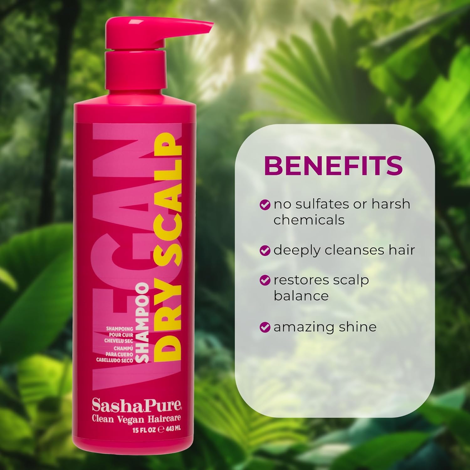 Sashapure Dry Scalp Shampoo with Sacha Inchi Oil, Soothes and Hydrates Scalp, Gently Removes Buildup, Sulfate-Free and Color-Safe, 15oz