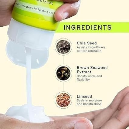 Ingredients Used: Enriched with Chia seeds, Brown Seaweed Extract and Linseed, our medium-hard hold gel boosts your natural curl/wave pattern, adds shine and seals in moisture.