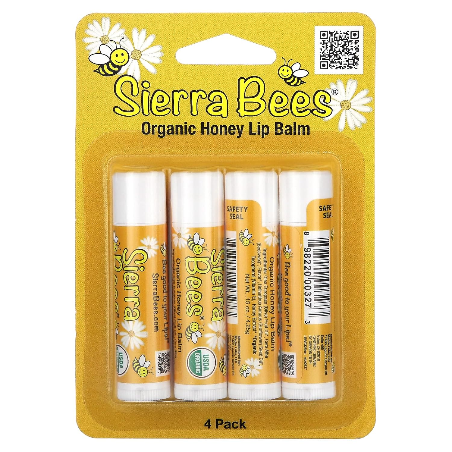 Sierra Bees, Organic Lip Balms, Honey, 4 Pack, .15 oz (4.25 g) Each