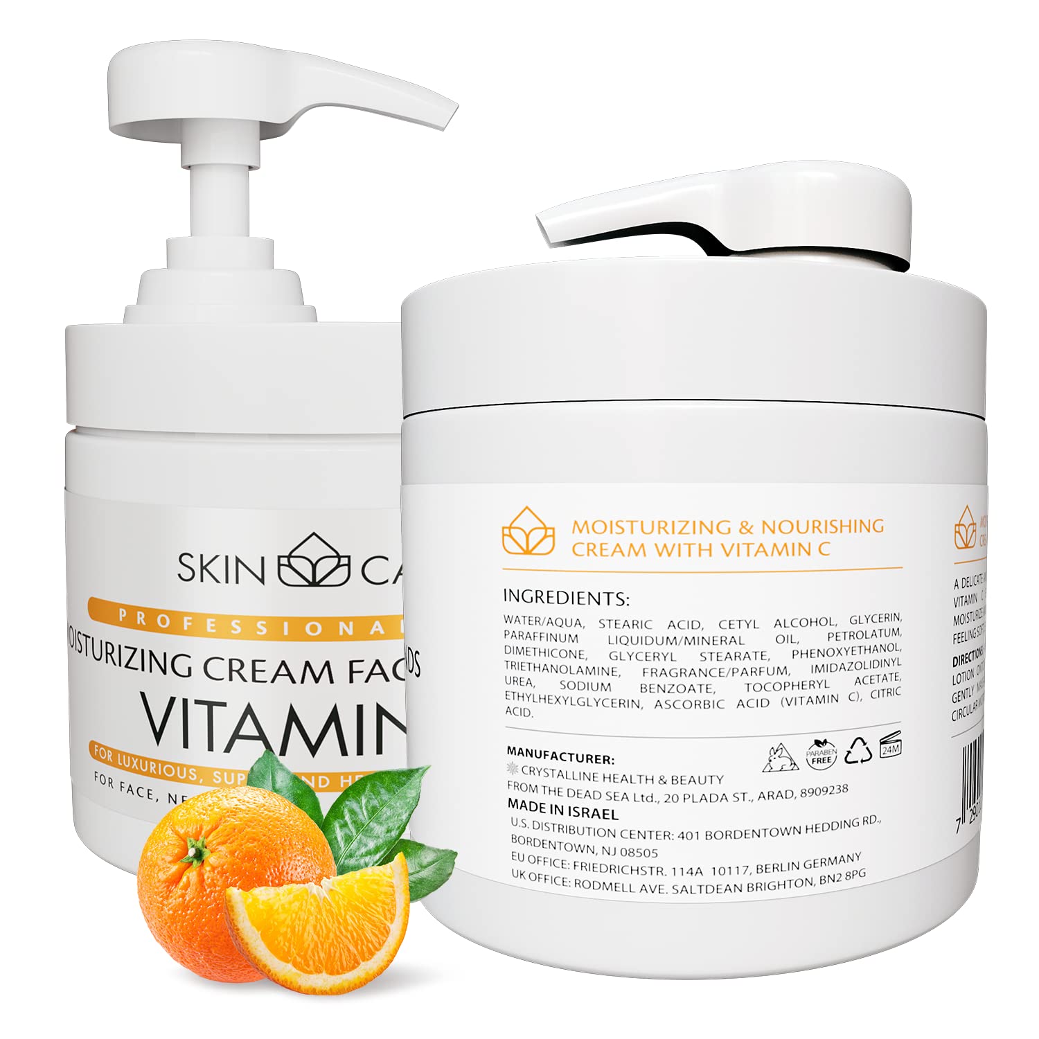 Skin Care Vitamin C 3-in-1 Moisturizer Face Cream, Neck and Hands – Treatment for Crepey Texture, Wrinkles and Sagging – Daily Lotion for All Skin Types – 16.9 fl. oz.