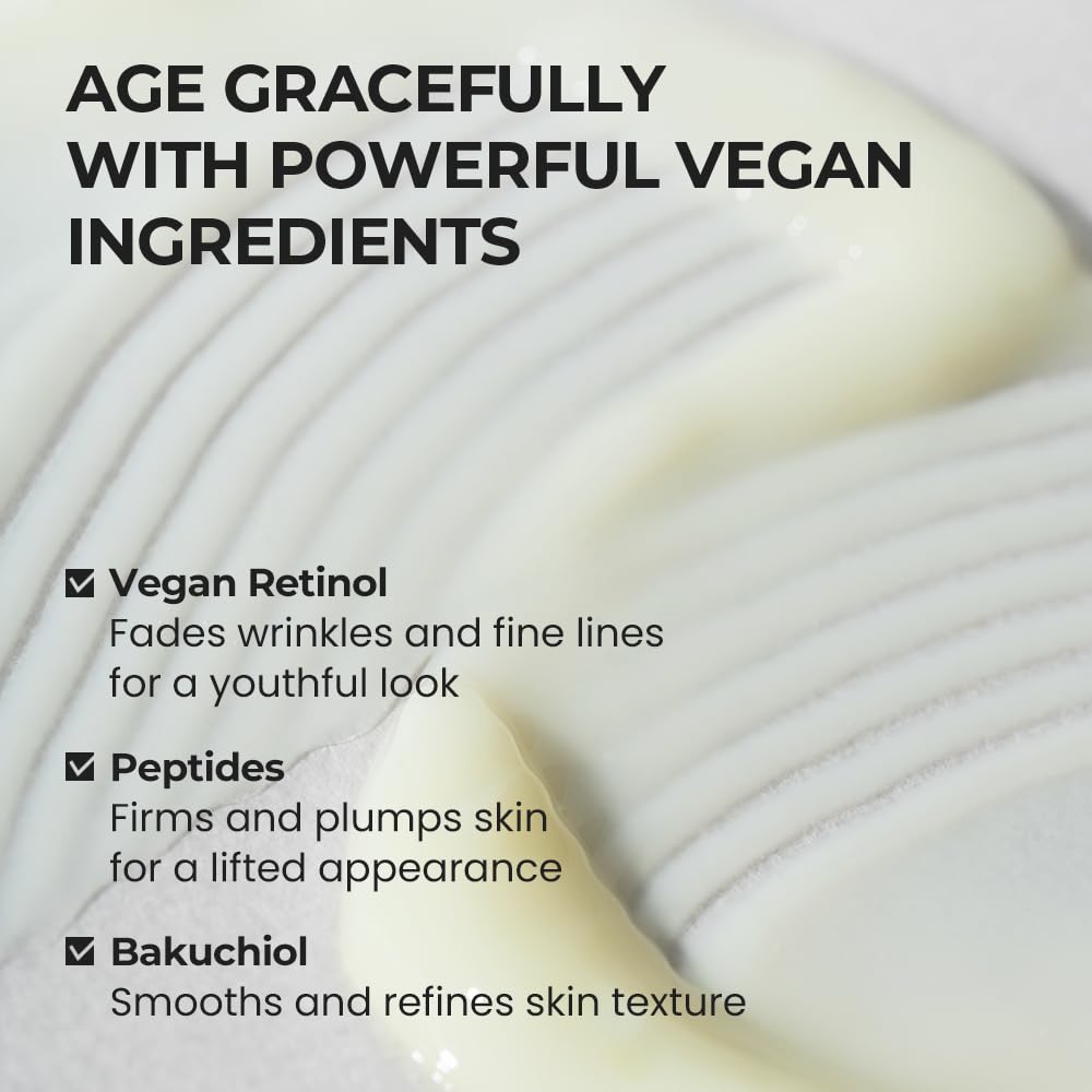 Advanced Vegan Formula: Formulated with Vegan Liposome Retinol, Bakuchiol, and Peptides, this serum offers effective wrinkle care with minimal irritation. Vegan Liposome Retinol reduces signs of aging and improves skin texture, Bakuchiol minimizes fine lines and soothes the skin, while Peptides help firm the skin.