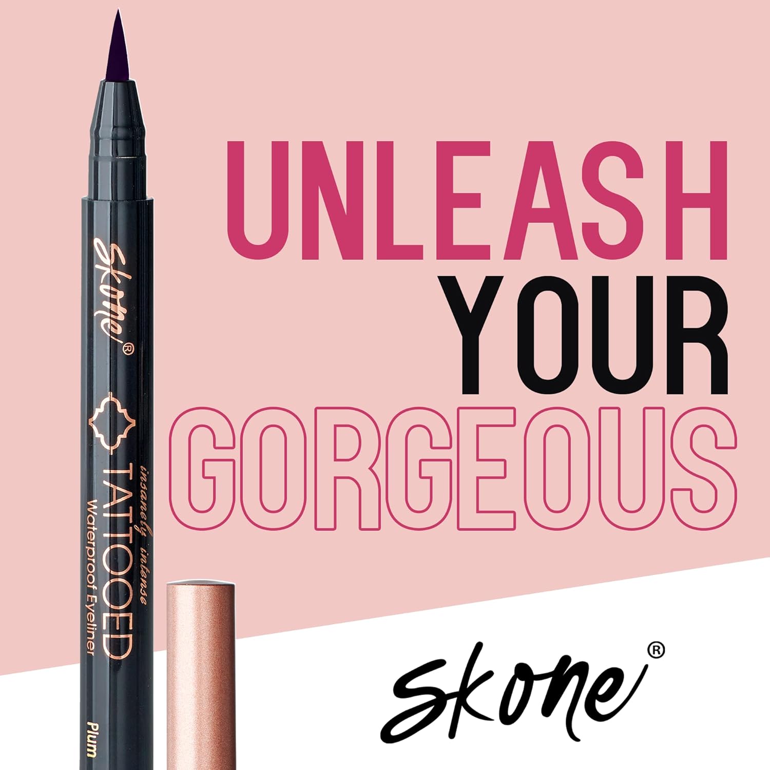 Skone Cosmetics Insanely Intense Tattooed Eyeliner Pen – Waterproof Liquid Eyeliner, Long Lasting, Sweat Proof, Smudge Proof Felt Tip Liquid Eyeliner – Pigmented Eye Liner Makeup – Plum Black (0.07oz)