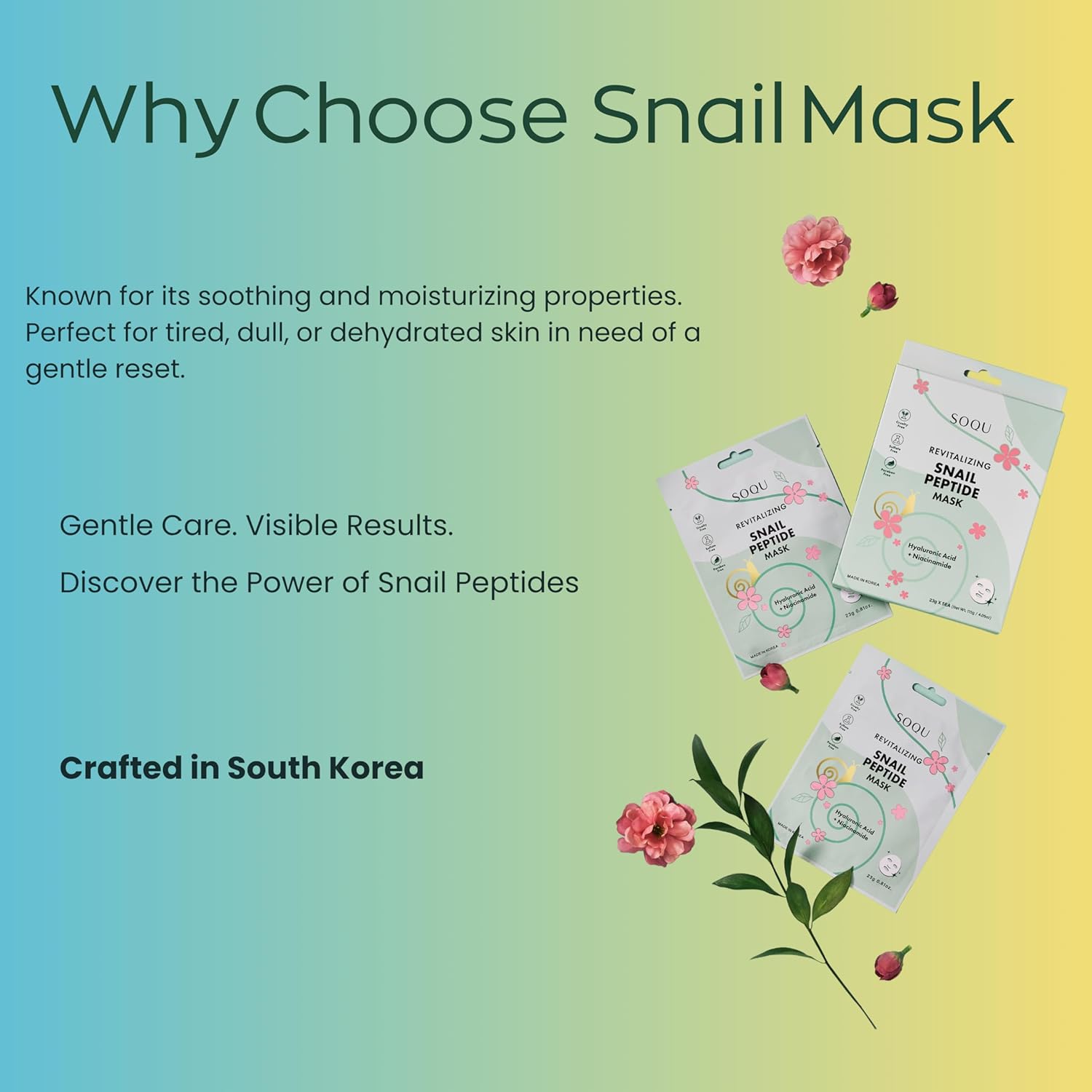 Be the first to review “Snail Peptide Mask with Snail Mucin, Peptide, Hyaluronic Acid, Niacinamide, 23g x 5 Sheets, Made in Korea”