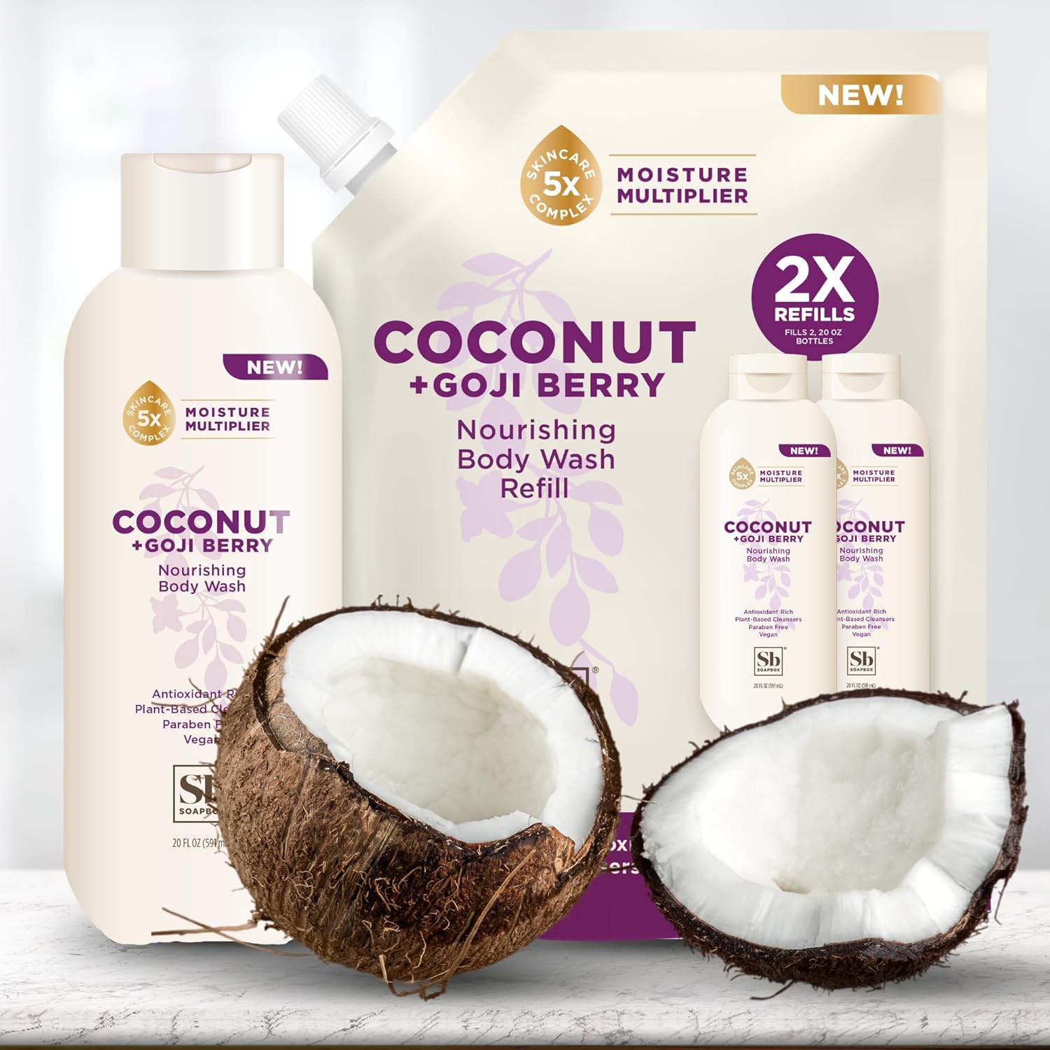 Soapbox Body Wash, Coconut & Goji Berry Liquid Body Wash, Moisturizing Soap with Shea Butter, Vegan Duo Pack of 2 Soap Bottles, 20oz Each
