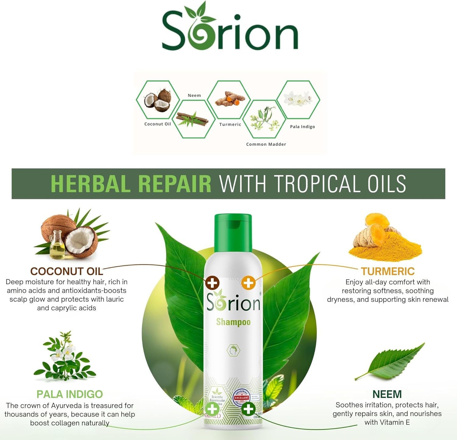 Be the first to review “Sorion Shampoo for Collagen Boost with Coconut Oil and Pala Indigo Essential Oils, Herbal Repair for Damaged Hair, Gently Nourishing Scalp Treatment”