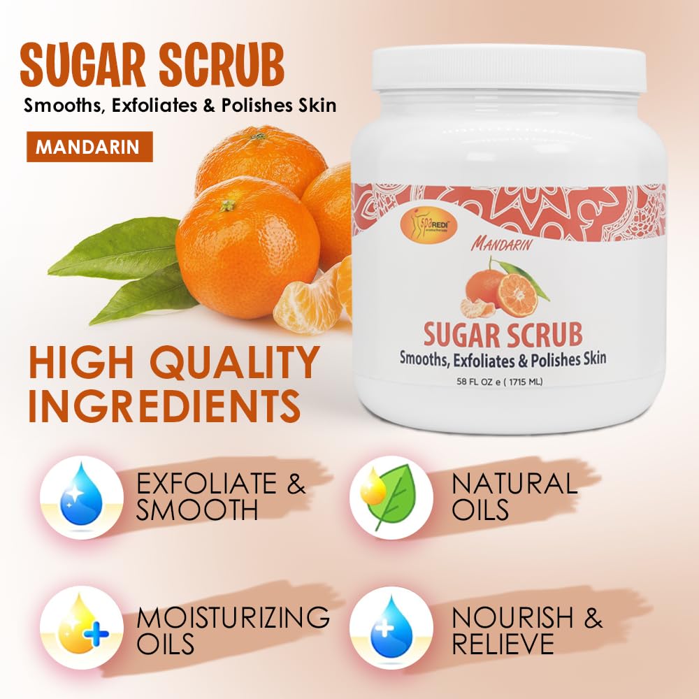 Be the first to review “SPA REDI Sugar Scrub – Exfoliating, Moisturizing, Hydrating and Nourishing, Glow, Polish, Smooth and Fresh Skin – Body Exfoliator, Mandarin – 58 Oz”