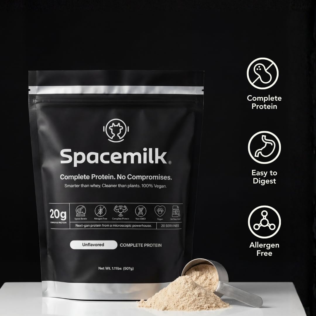 Spacemilk Unflavored Vegan Protein Powder, Pure One Ingredient, 20g Complete Protein, PDCAAS 1.0, Zero Sugar, Allergen-Free, Dairy-Free, Gluten-Free, Non-GMO, No Bloating, 20 Servings (1.12 lbs)