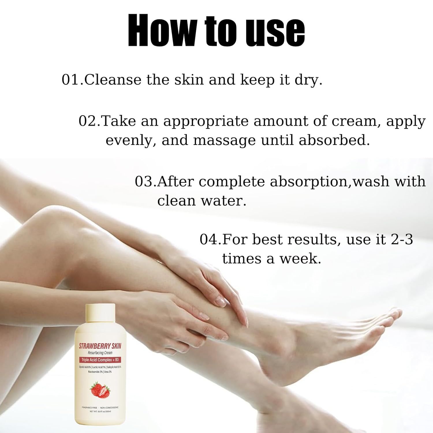 [Multi-Action Skin Refining Treatment] Formulated with a triple acid complex, it’s ideal for keratosispilaris, strawberry legs, and other body blemishes on the body and arms. lt deeply penetrates the skinremoving strawberry legs and softening the texture.