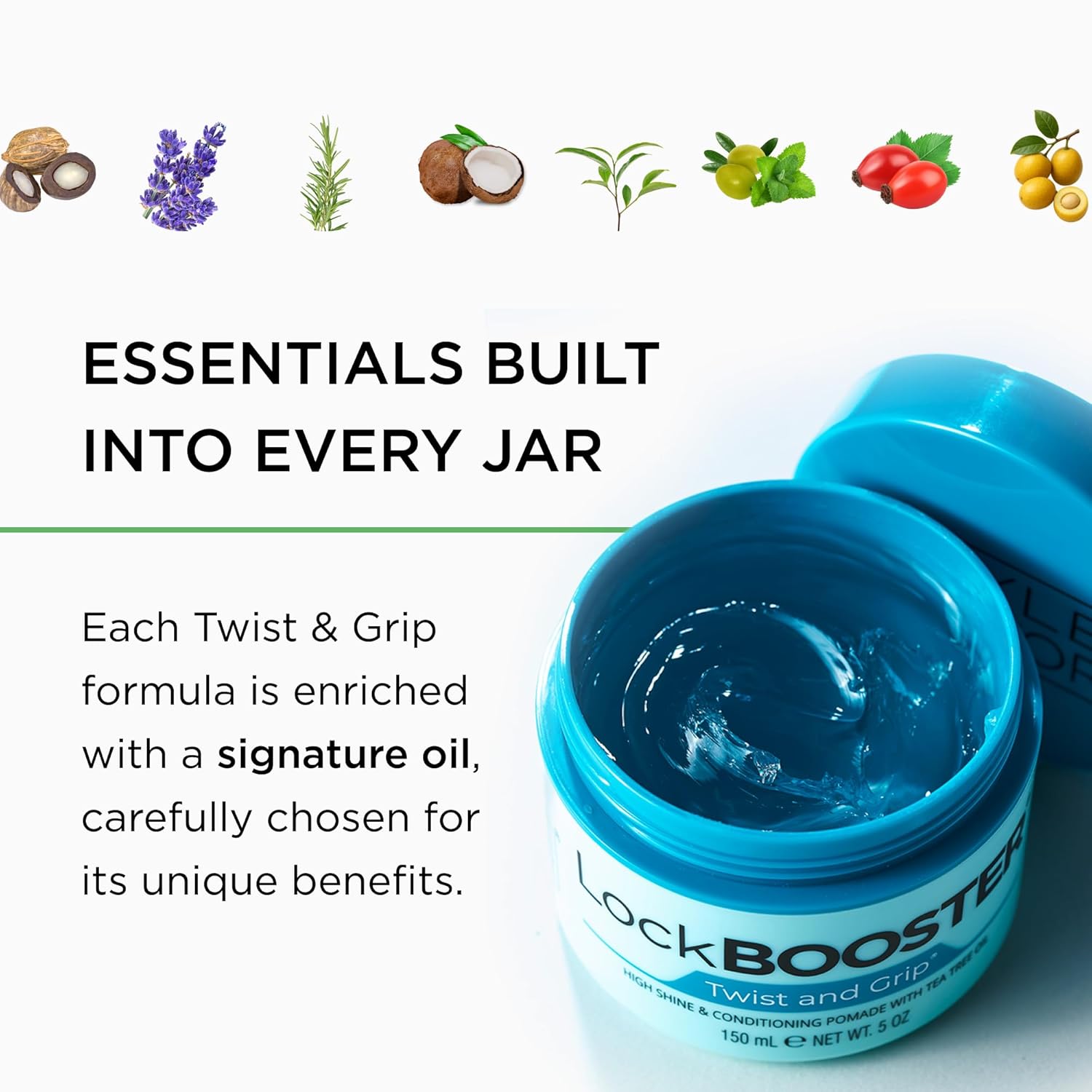 Lock Booster Twist and Grip pomade with natural oils smooth shine frizz control moisture for styles