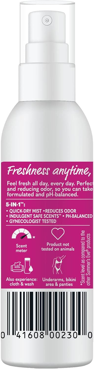 Contains 1 bottle of Summer’s Eve Refresher Mist Amber Nights and at 1.89 oz., this fast-drying body mist for women is small enough for a toiletry bag, gym bag, or even a carry-on bag for a flight