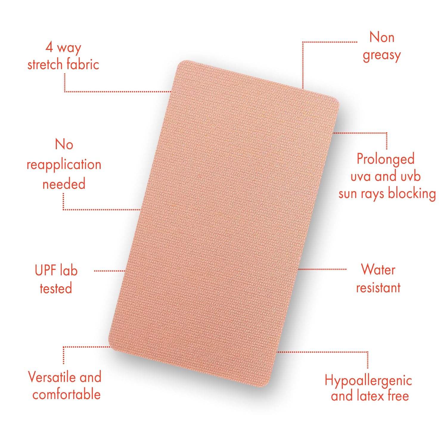 Unmatched Sun Protection: UPF50+ rating Shade Patch blocks over 98% of UV rays ensuring your skin maximum protection against sunburn and skin damage. Textile lightweight patches, high breathability, radiance-boosting.