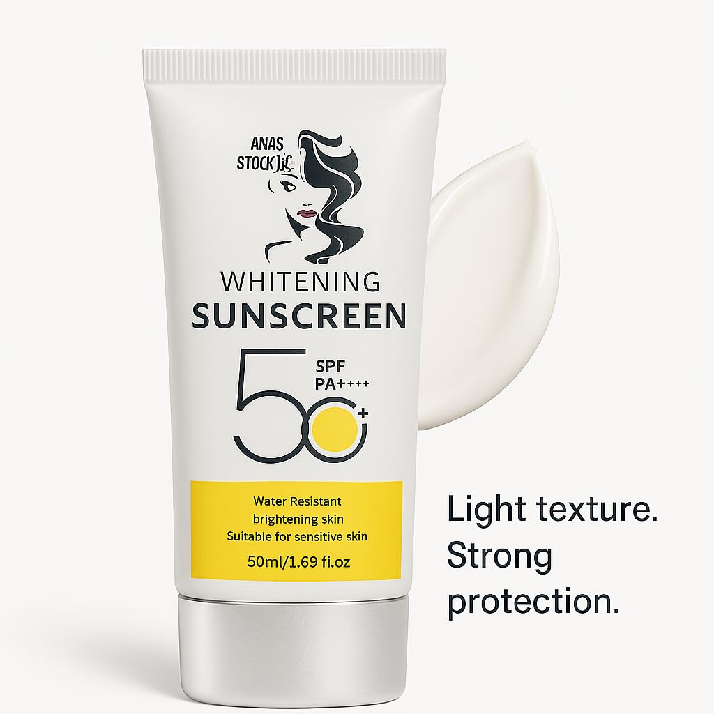 Protect your skin and improve its tone with our Whitening Sunscreen SPF 50 PA++++, a high protection sunscreen against UVA and UVB rays, designed to offer care, hydration and a lightening effect. Its advanced formula is water-resistant and quickly absorbed, ideal for daily use in any climate.