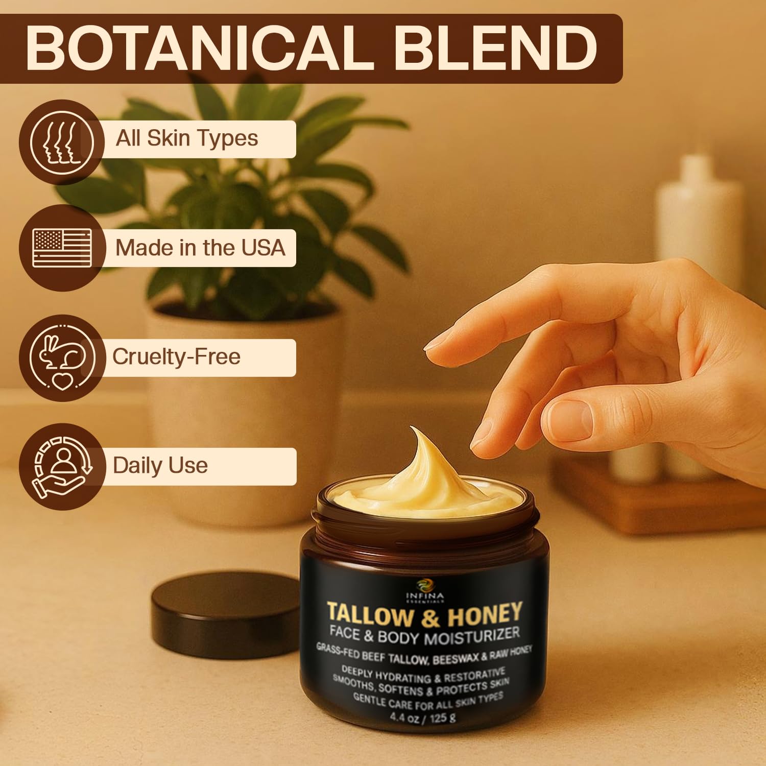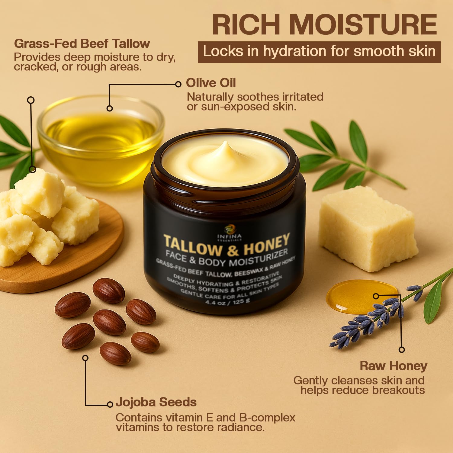 ✅ Nourishing Daily Moisturizer for Face & Body: This deeply hydrating tallow and honey cream helps soften, restore, and moisturize dry, cracked skin—perfect as a daily face moisturizer or body cream.