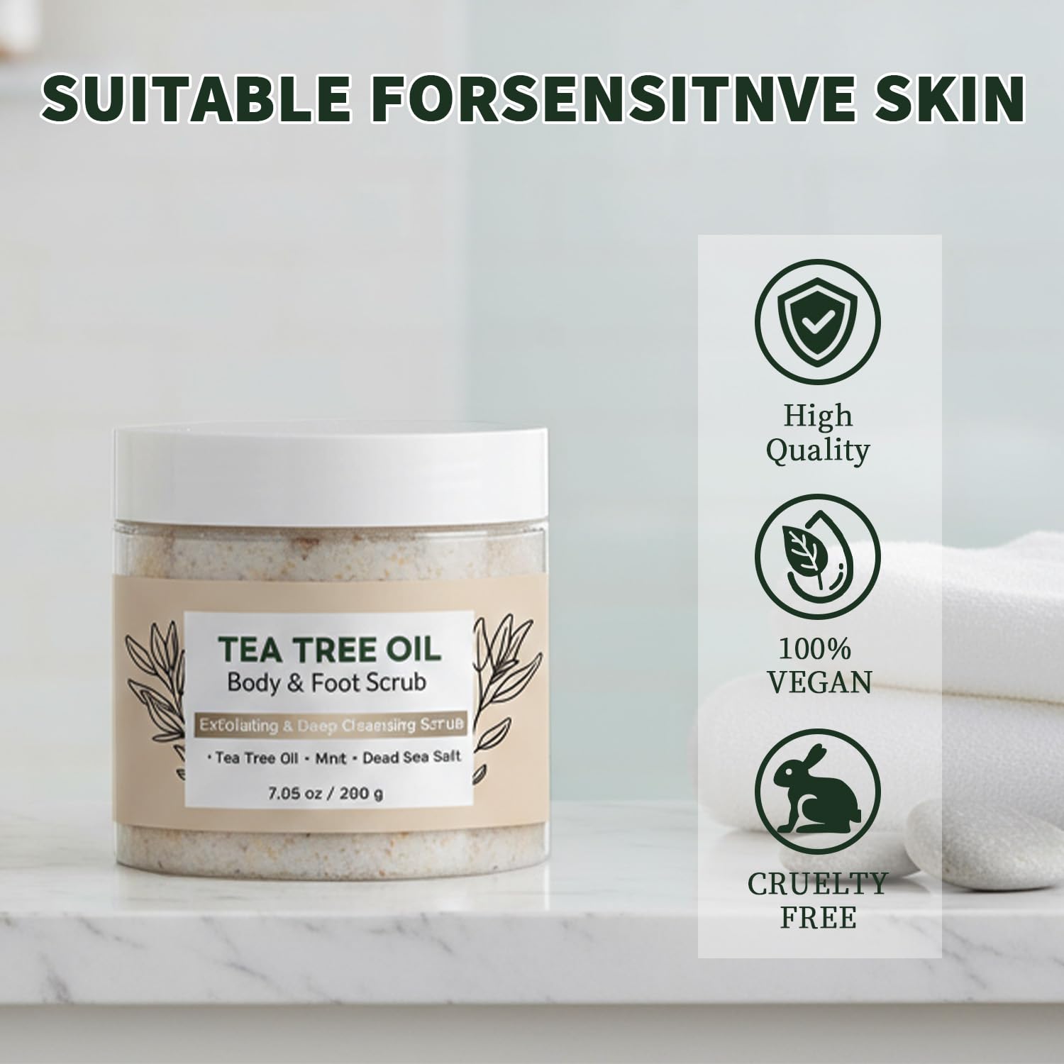 【Deep Cleansing & Exfoliating Scrub】Infused with natural Tea Tree Oil and Dead Sea Salt, this scrub buffs away dead skin cells and impurities, leaving your skin deeply cleansed, smooth, and revitalized for both men and women.