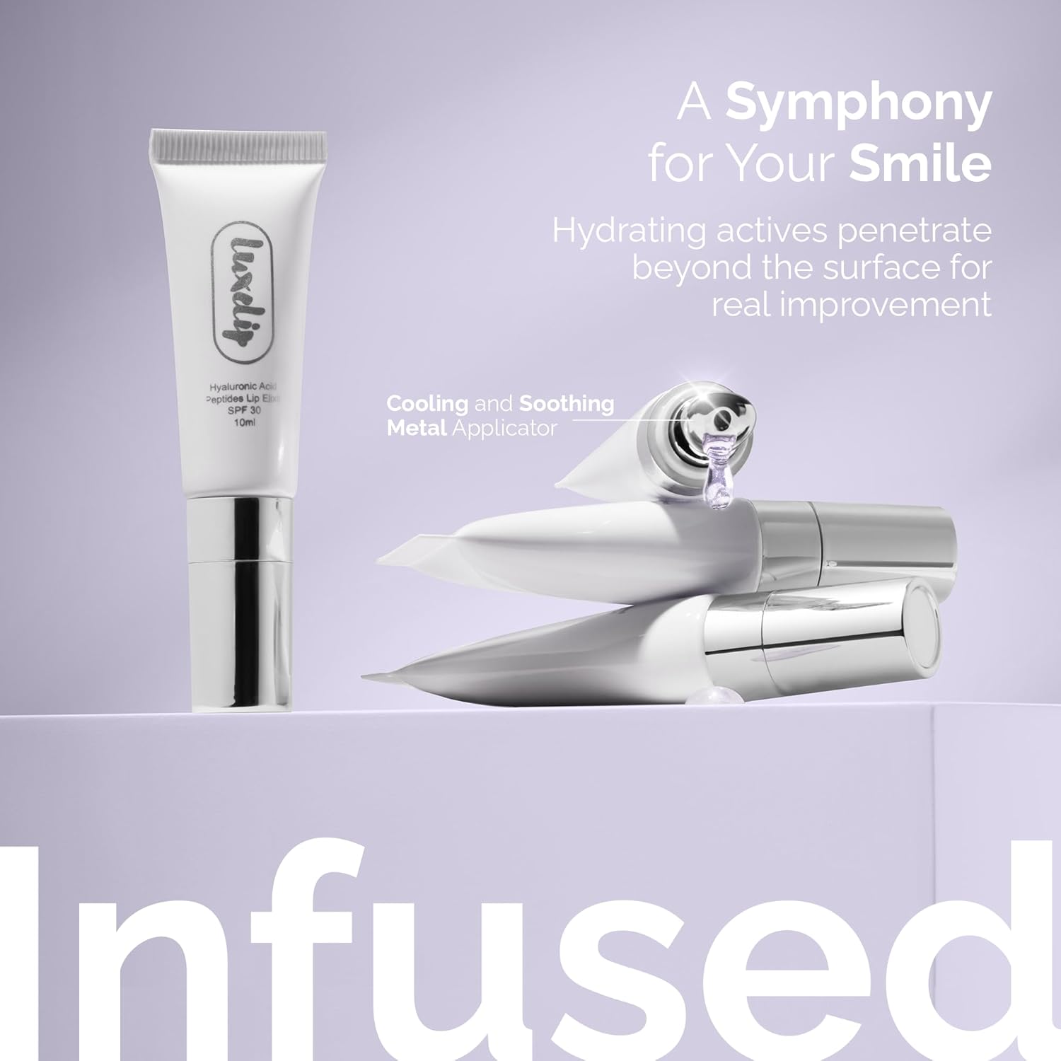 Tinted Shine with Care: LuxeLip Elixir combines the perfect tint of color with deep hydration, delivering a sheer glow that enhances your natural lip tone.
