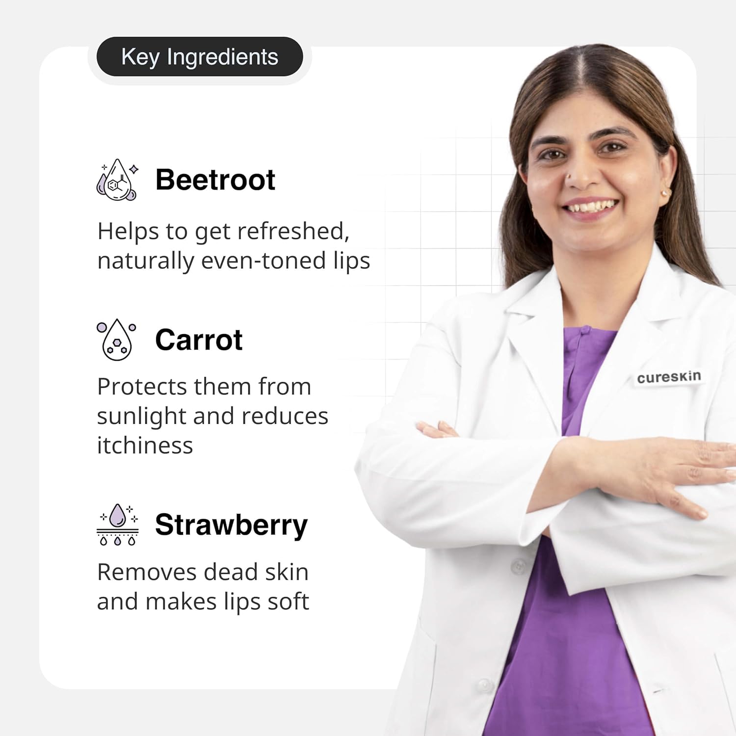 Anti-oxidant rich Ellagic acid that helps improve the appearance of dull, uneven-toned lips