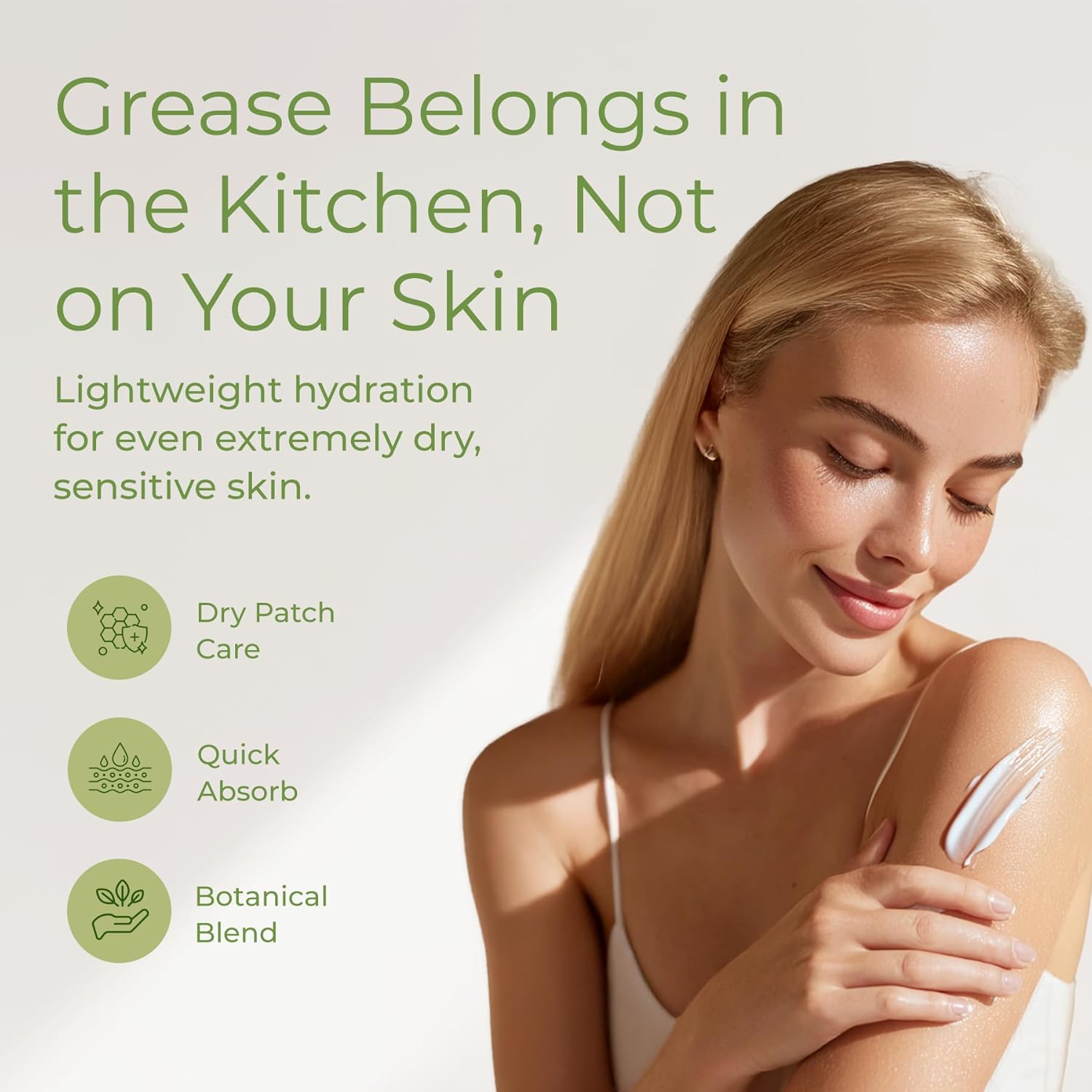 DEEP NON-GREASY HYDRATION: Finally a dry skin lotion that’s moisture-rich & silky with no heavy residue! Our dry skin body lotion for women & men absorbs quickly & cleanly, no greasy feeling.