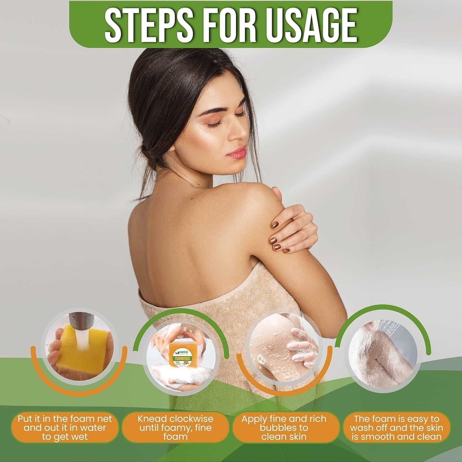 Improved skin appearance: The ingredients in this turmeric soap bar are designed to promote a brighter complexion and smoother skin texture, resulting in a more youthful and radiant appearance.