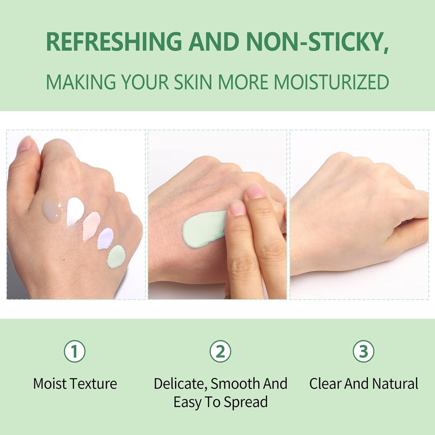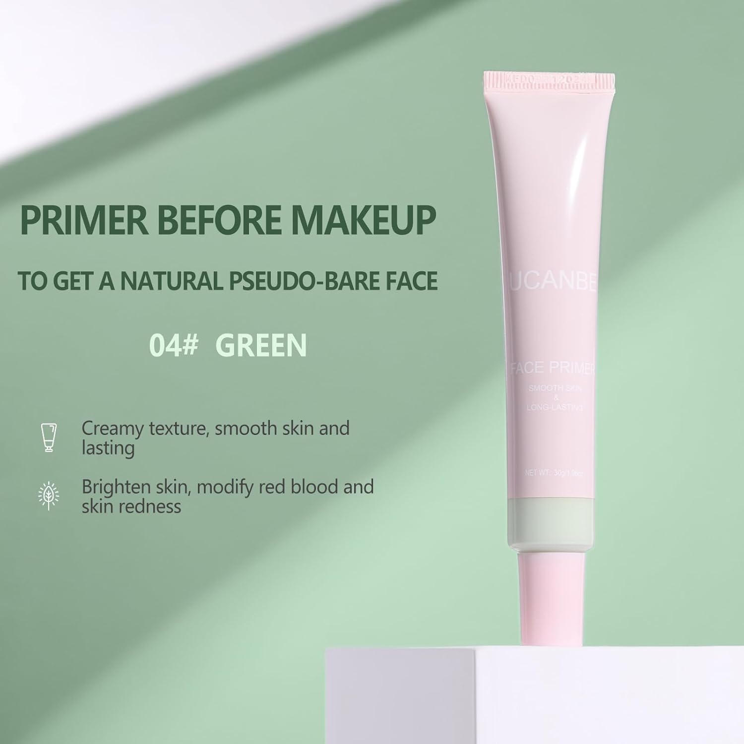 MULTIPLE CHOICES: 5 different primers are available for you to choose from, including 01# white, 02# pink, 03# purple, 04# green and 05# blue. White can brighten the skin tone and slightly cover pores and fine lines. Pink can make dull skin healthy and rosy. Purple can brighten and even out the skin tone. Green can even out the skin tone and modify redness. Blue can moisturize and hydrate.
