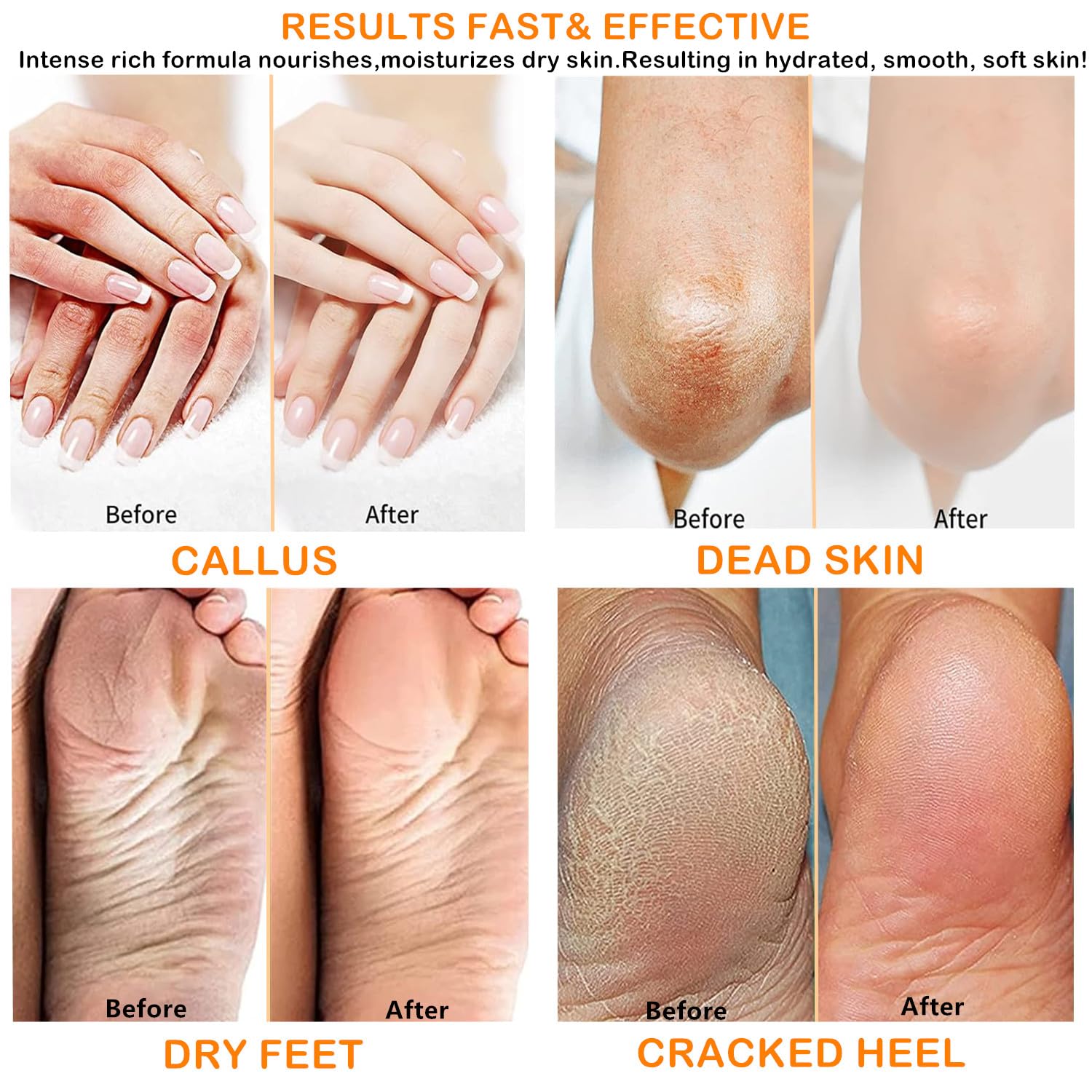 Advanced ultra repairing cream for feet, heels, hands, ankles, elbows, Legs, toenails, and knees. Repairs dry, cracked, rough, bumpy, and aged skin. It is suitable for all skin types. Minimizes appearance of corns and calluses. Softens and Nourishes thick, gentle exfoliates scales and dead derma. urea cream will bring you silky soft moisturized touch.