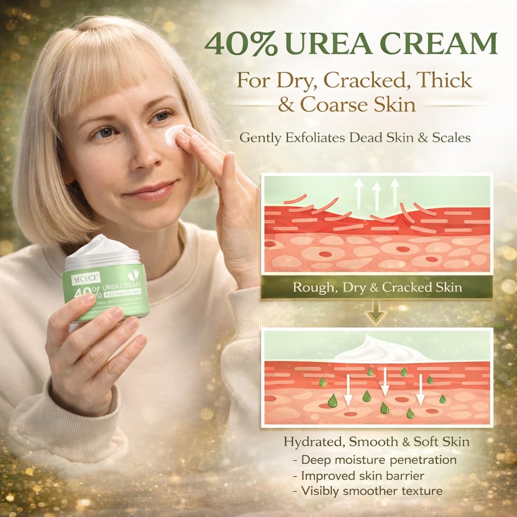 High-Strength 40% Urea Cream for Intensive Moisture: Formulated with 40 percent urea, this intensive urea cream delivers deep moisturizing care for very dry, rough, and thickened skin. Designed to help soften hardened texture and improve the look and feel of dehydrated areas with consistent daily use.