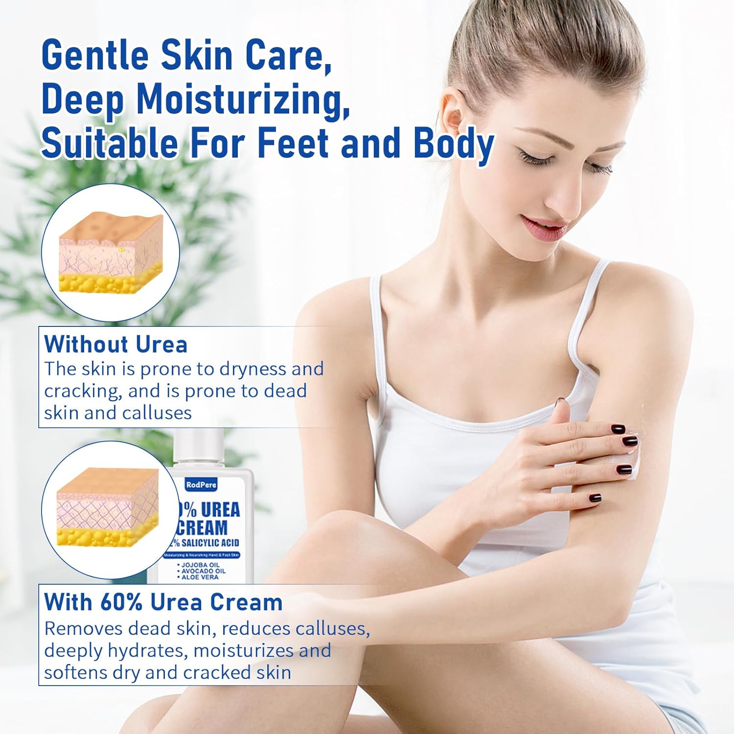 60% UREA CREAM FOR DRY CRACKED SKIN: We use 60% urea and 2% salicylic acid, designed specifically for dry and cracked skin, to deeply soften and exfoliate, remove dead skin, relieve skin roughness, reduce skin calluses, smooth and soothe the skin