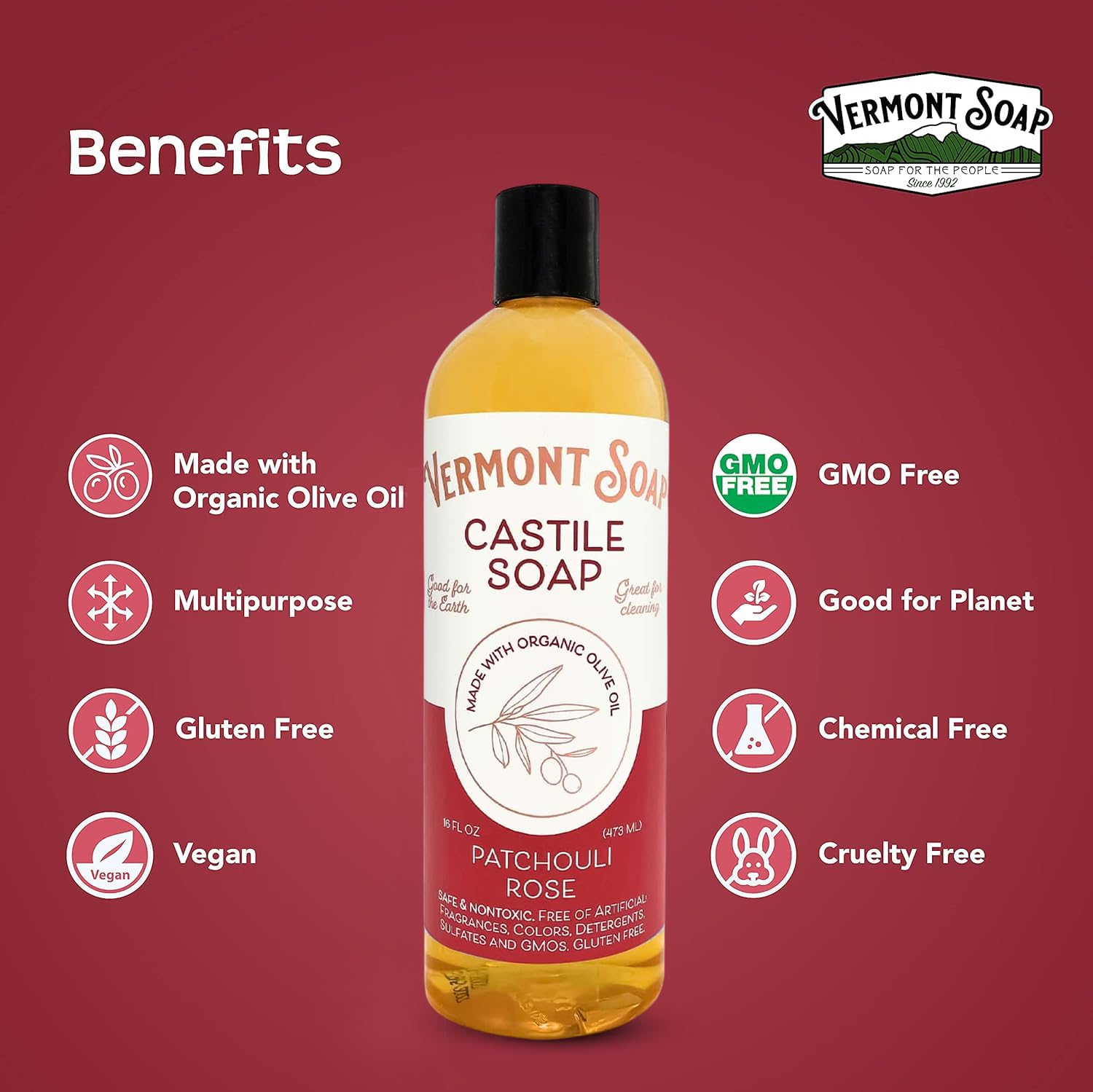 Be the first to review “Vermont Castile Soap Patchouli Rose, Gentle Liquid Soap for Sensitive Skin & Natural Body Wash, Organic Hair Shampoo for Oily Hair, Aloe Castile Soap for Men & Women – 16 Oz”