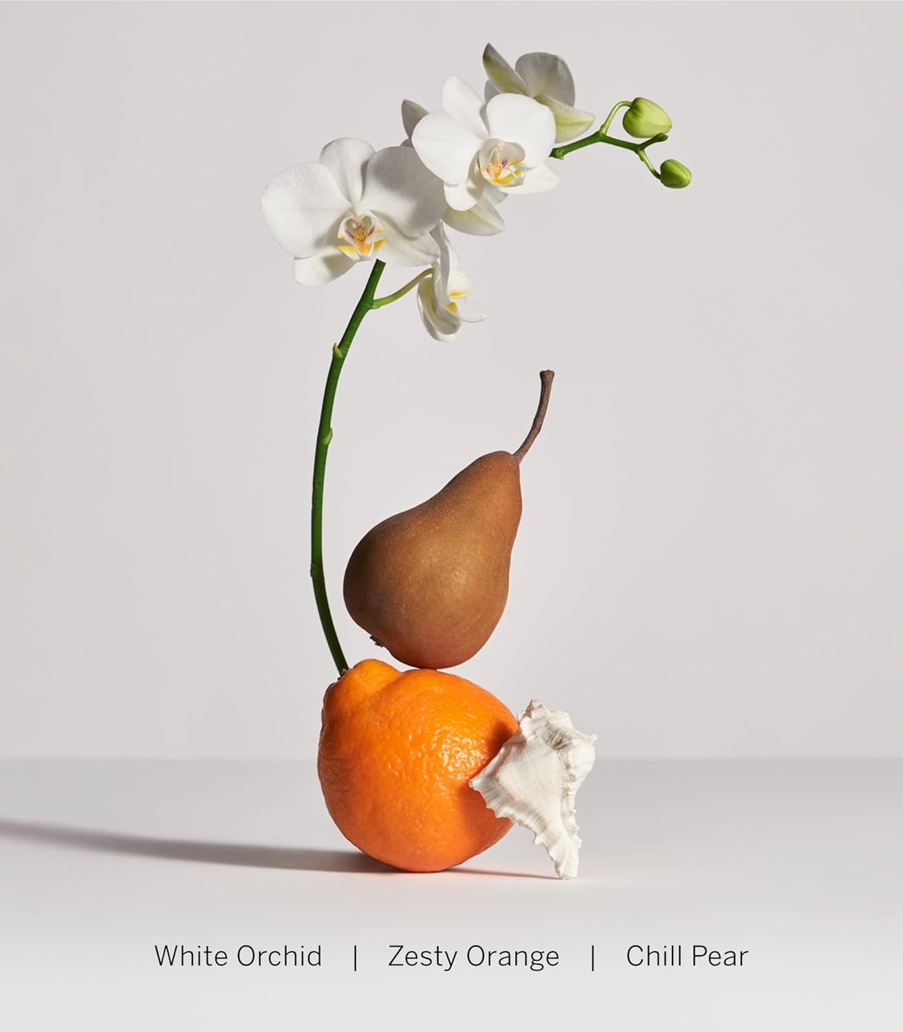 A scent blend to inspire living on the bright side. Sparkling. Bright. Serene. With notes of Chill Pear, White Orchid and Zesty Orange.