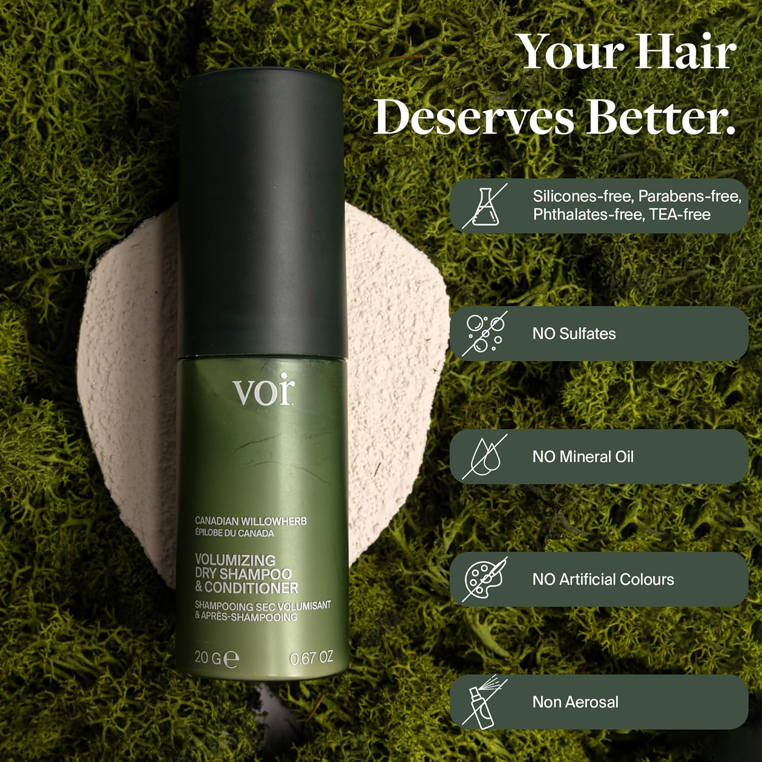 MINERAL-RICH SCALP CARE: Enriched with Canadian Oceanic Glacial Clay, Green Tea Extract, and Canadian Willowherb Extract; this volumizing dry shampoo balances sebum, strengthens follicles, and supports scalp health for fresher, fuller-looking hair