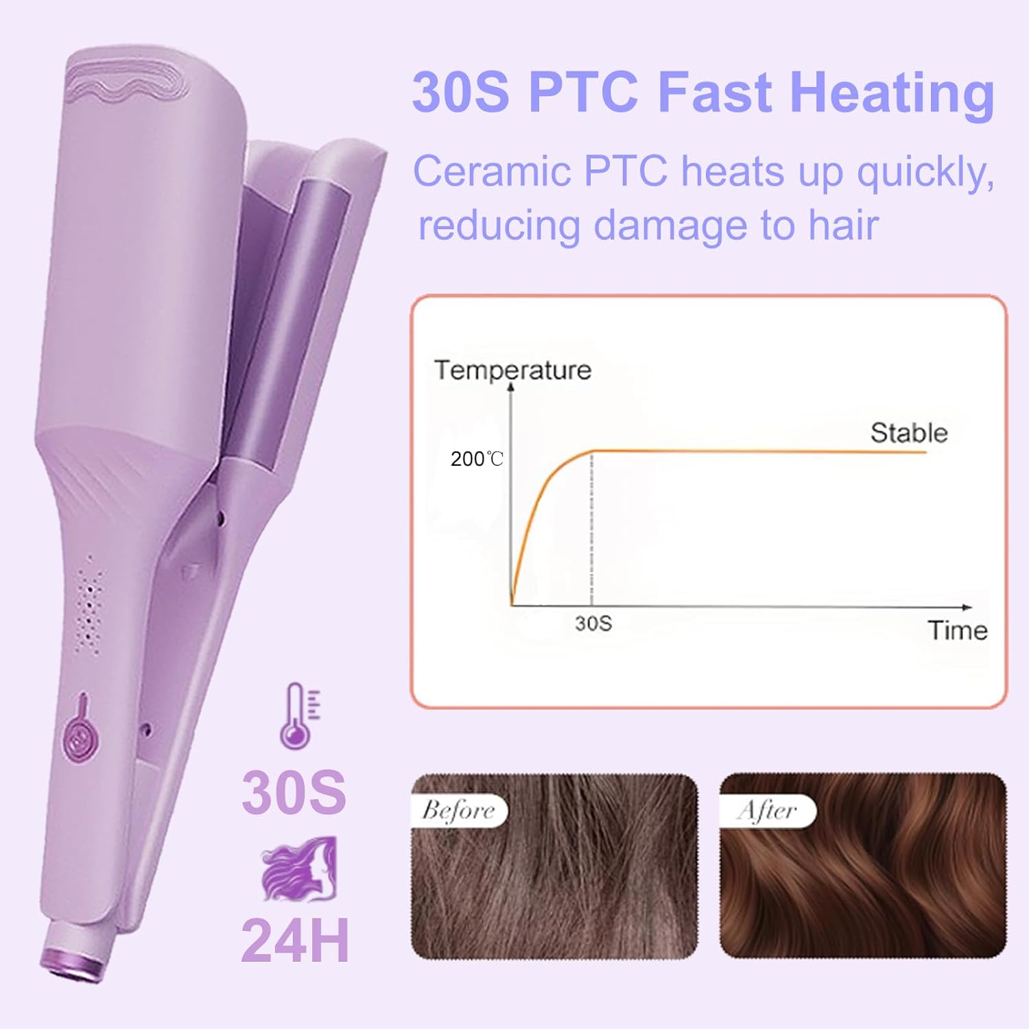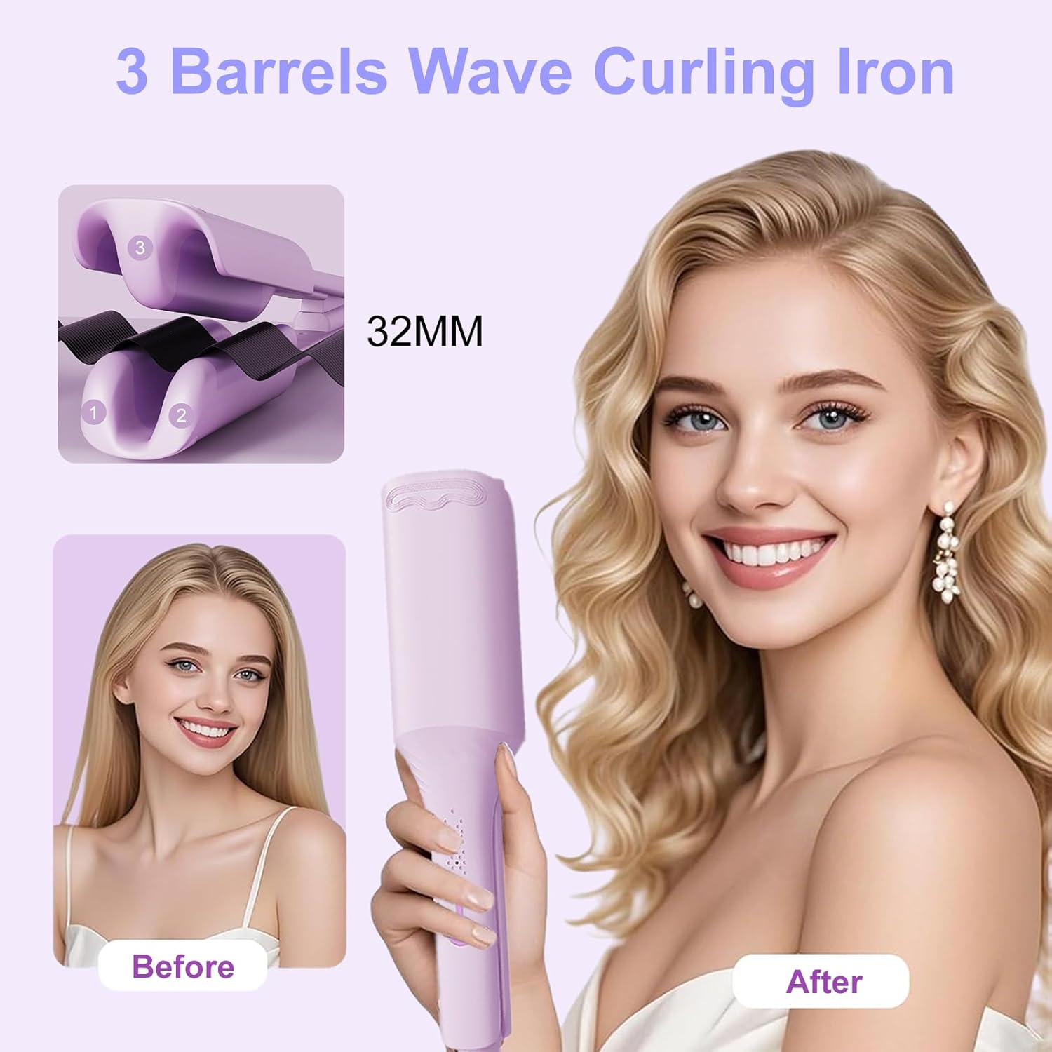 【Instant Beachy Waves】Our 3-barrel curling iron creates long-lasting mermaid curls, loose waves, or voluminous spirals in seconds—no styling skills needed. This 1.25 Inch Wavy Hair Curler is NOT recommended for very short hair. For best and safe results, please ensure hair length is sufficient to wrap comfortably around the barrel.