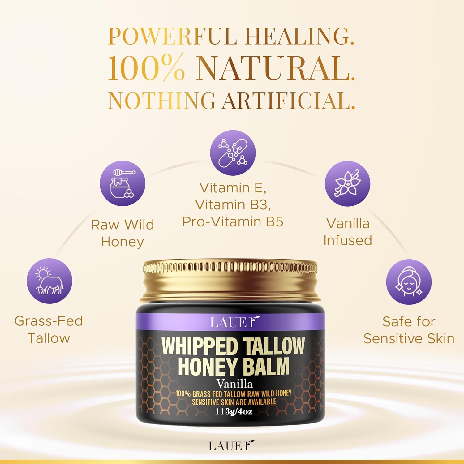 Yes! Our Whipped Tallow Honey Balm is made with 100% natural ingredients, including grass-fed beef tallow and raw honey. It’s free from synthetic fragrances, preservatives, and harsh chemicals — making it ideal for sensitive or easily irritated skin