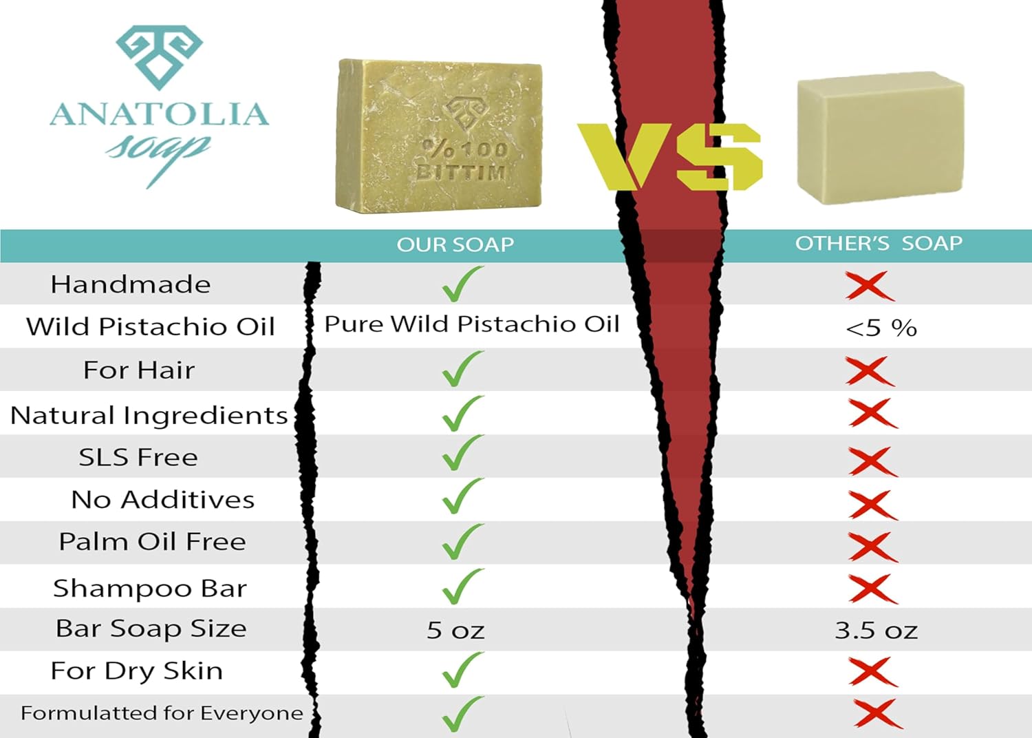 ✔ Traditional Wild Pistachio Bar Soap Made with plant-based oils and wild pistachio using classic handmade methods. Intended solely for everyday cleansing.