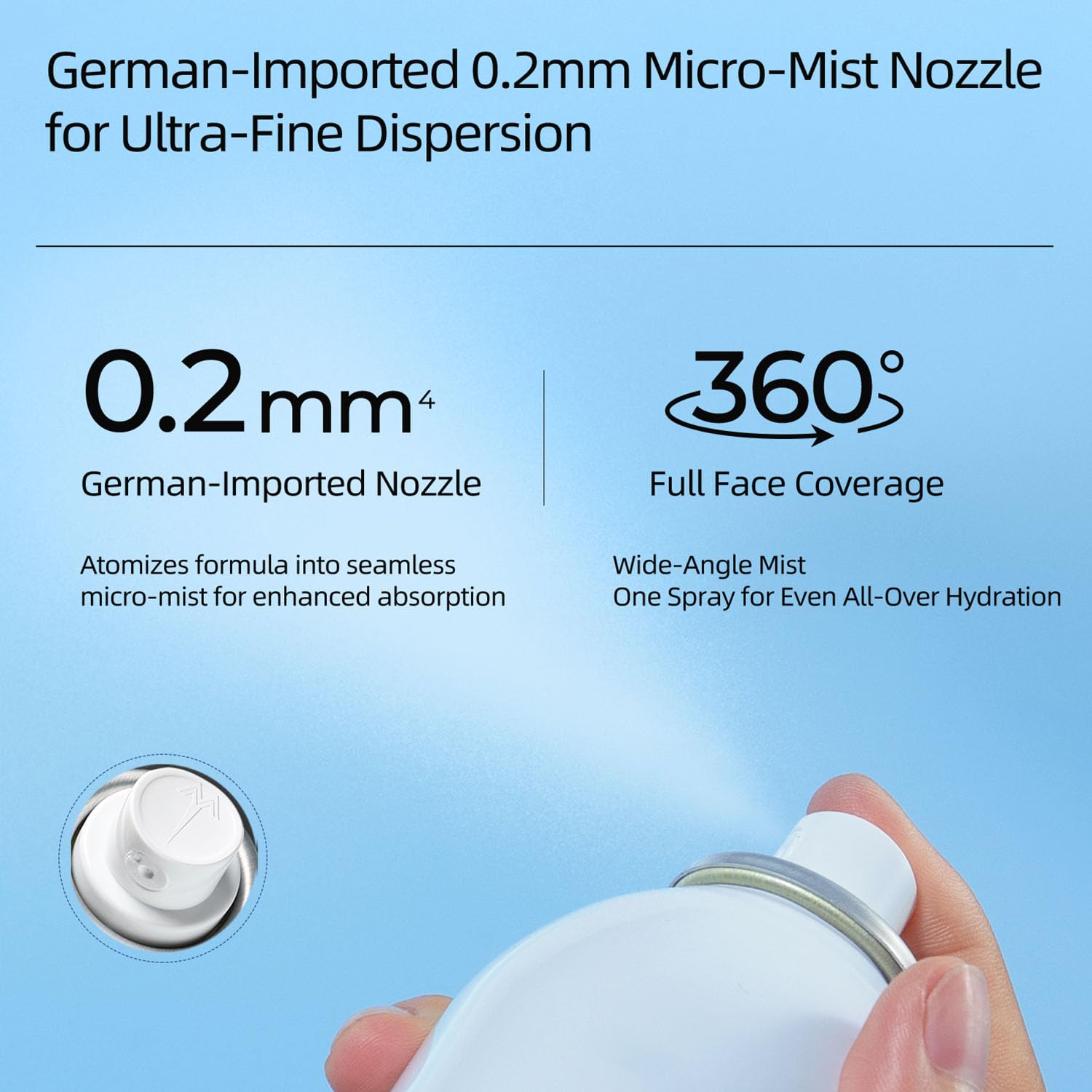 The 0.22mm nozzle delivers a fine face spray mist hydrating that gently nourishes the skin, boosting hydration and improving the skin’s natural moisture retention.