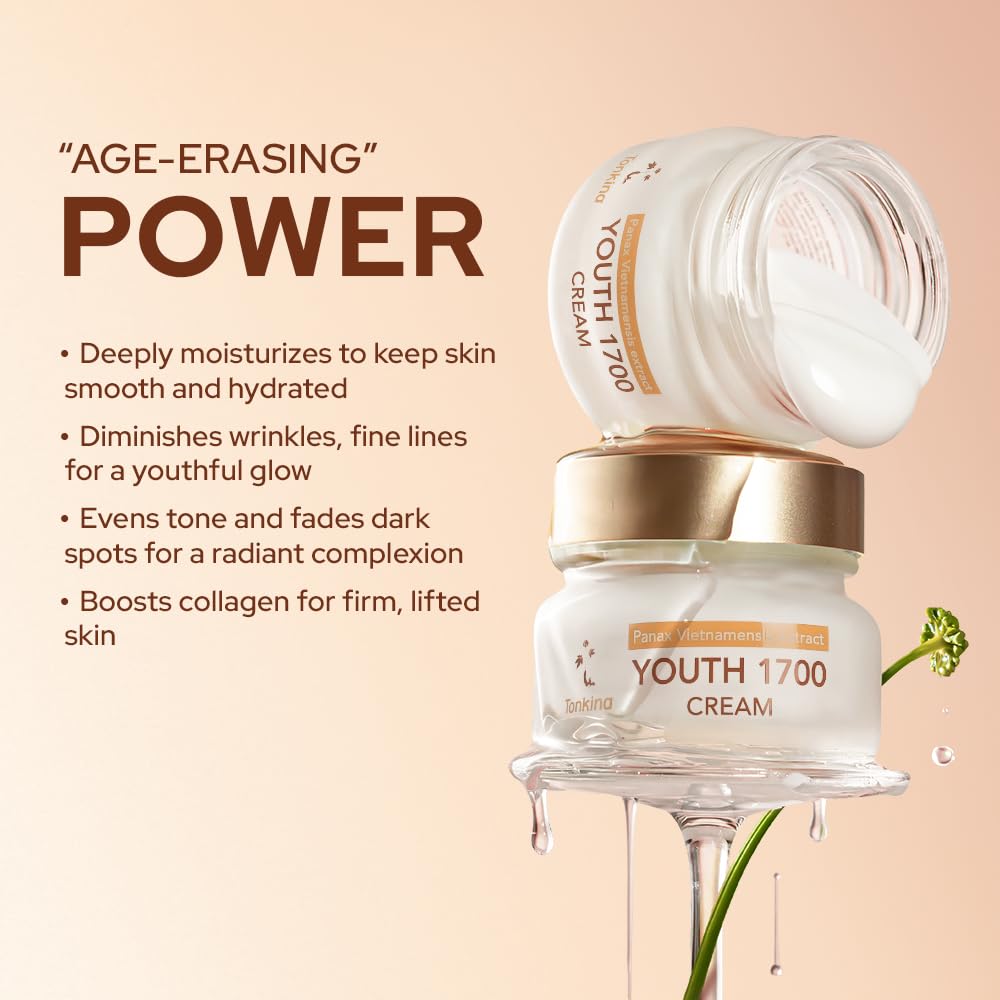 Youth 1700 Anti-Aging Moisturizer with Niacinamide, Hyaluronic Acid, Ginseng extract & Panthenol, Smooths Wrinkles & Brightens Skin, Suitable for All Skin, 1.76 oz