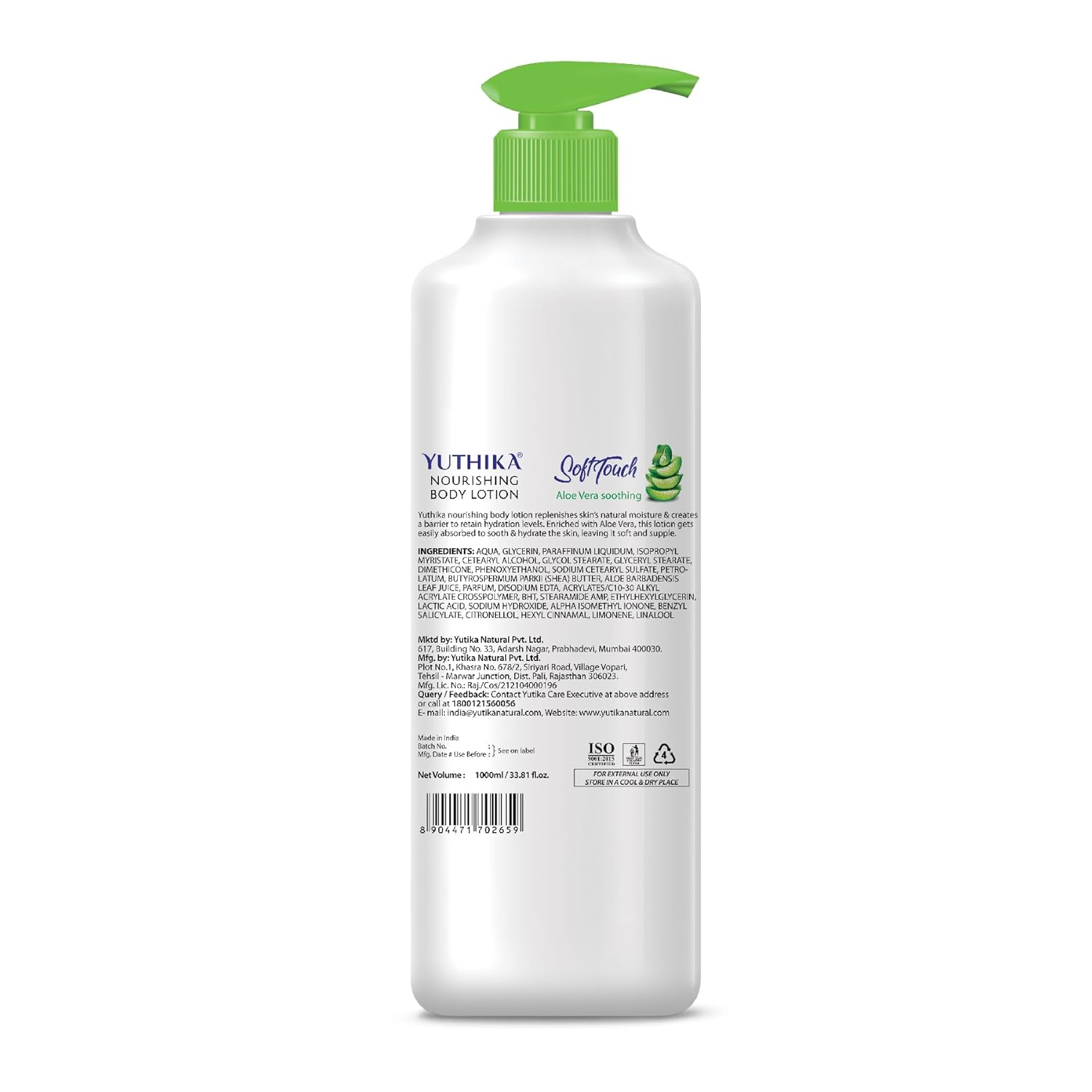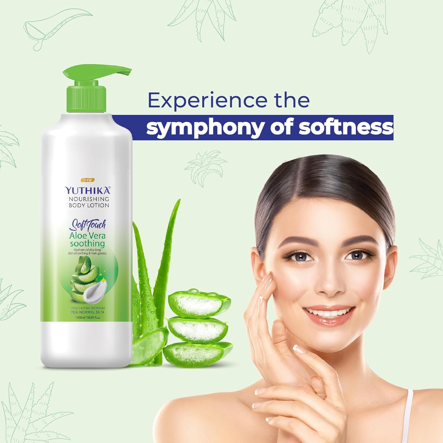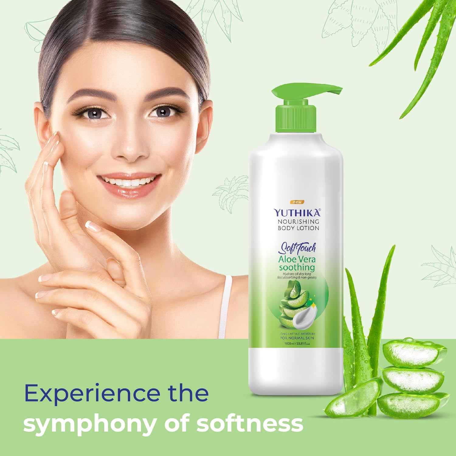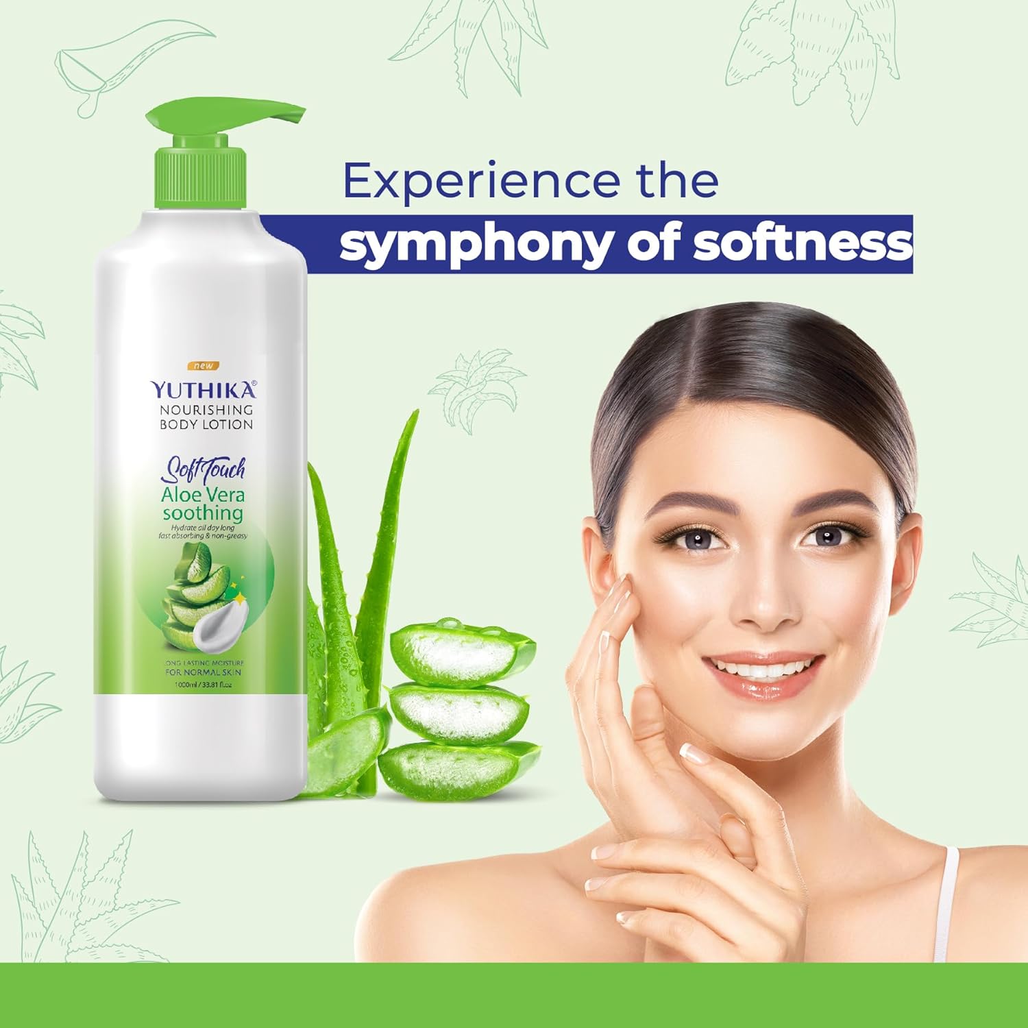 Yuthika Aloe Vera Soft Touch Nourishing Body Lotion – 1000 ml | Hydrating & Fast Absorbing, Non-Greasy Formula for Normal Skin
